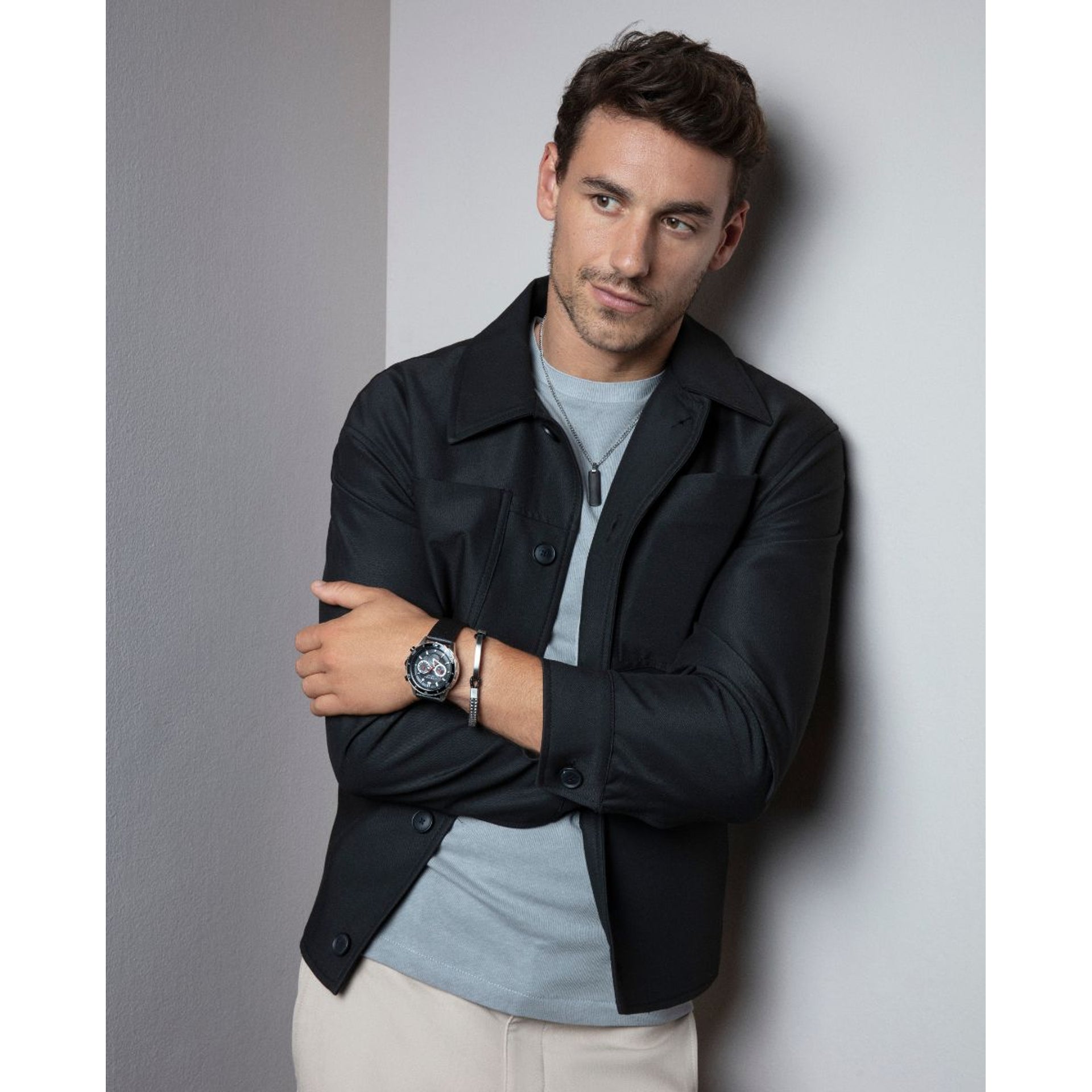 Bracciale da uomo in acciaio con parte tubolare e pelle blu