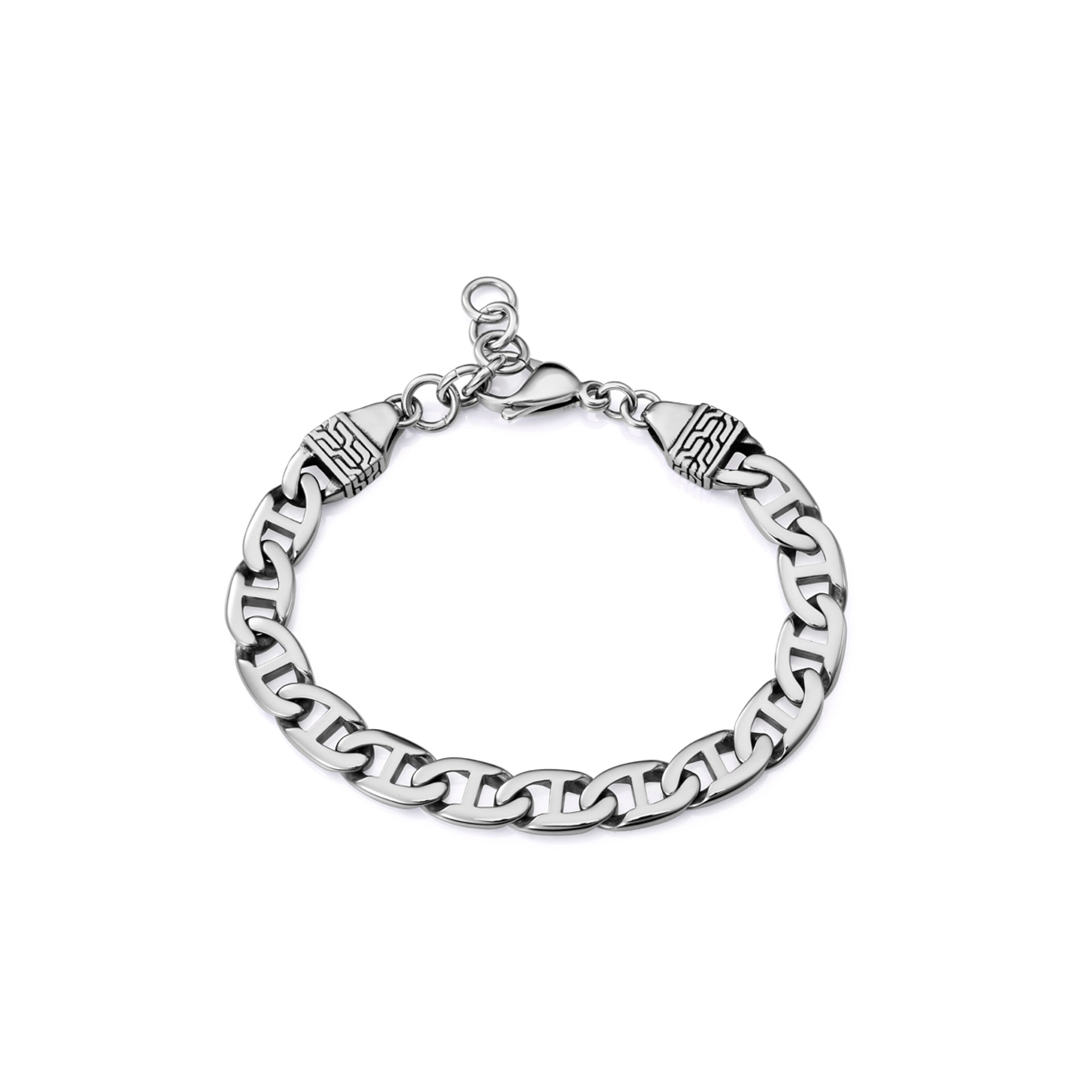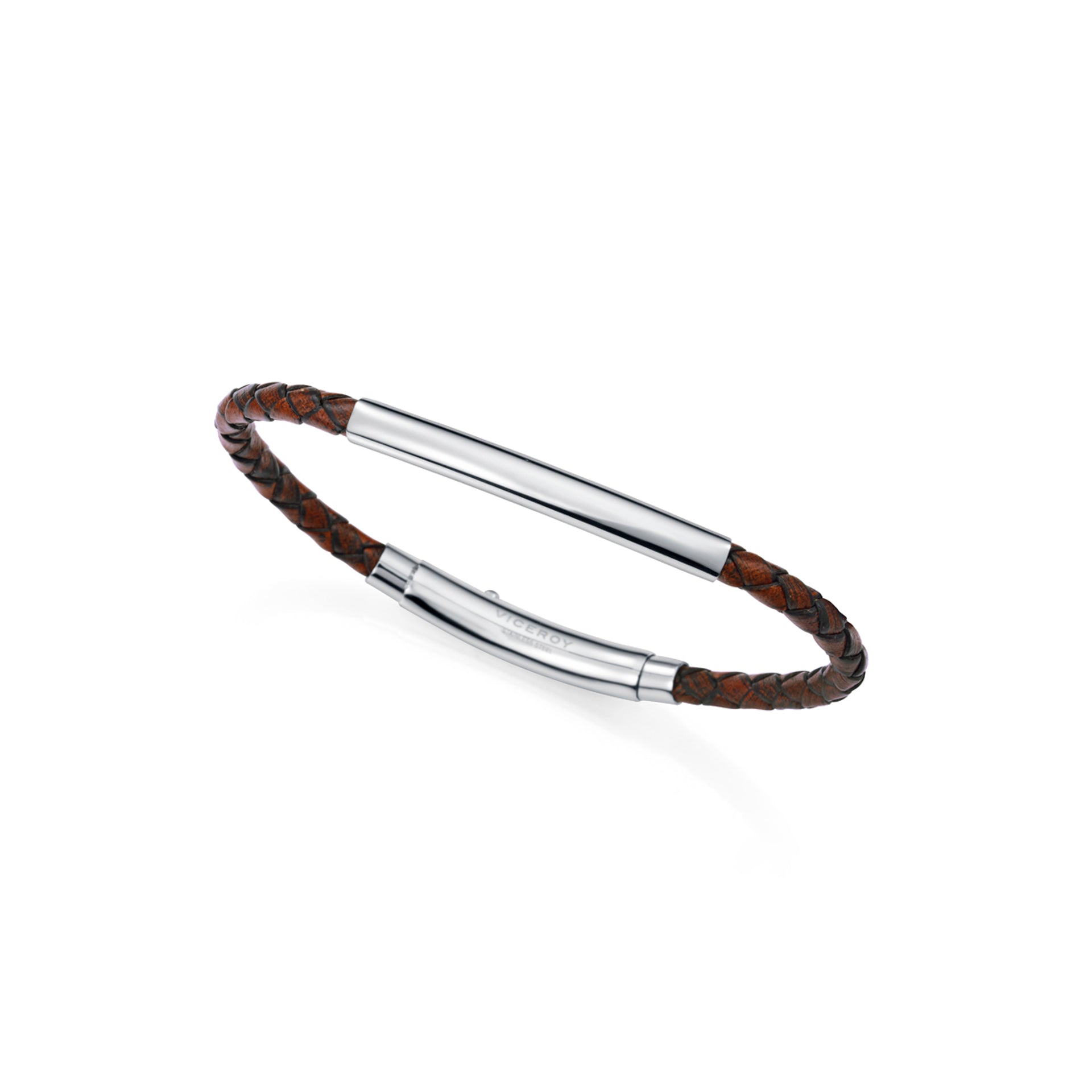 Bracciale da uomo con parte tubolare in acciaio e pelle marrone