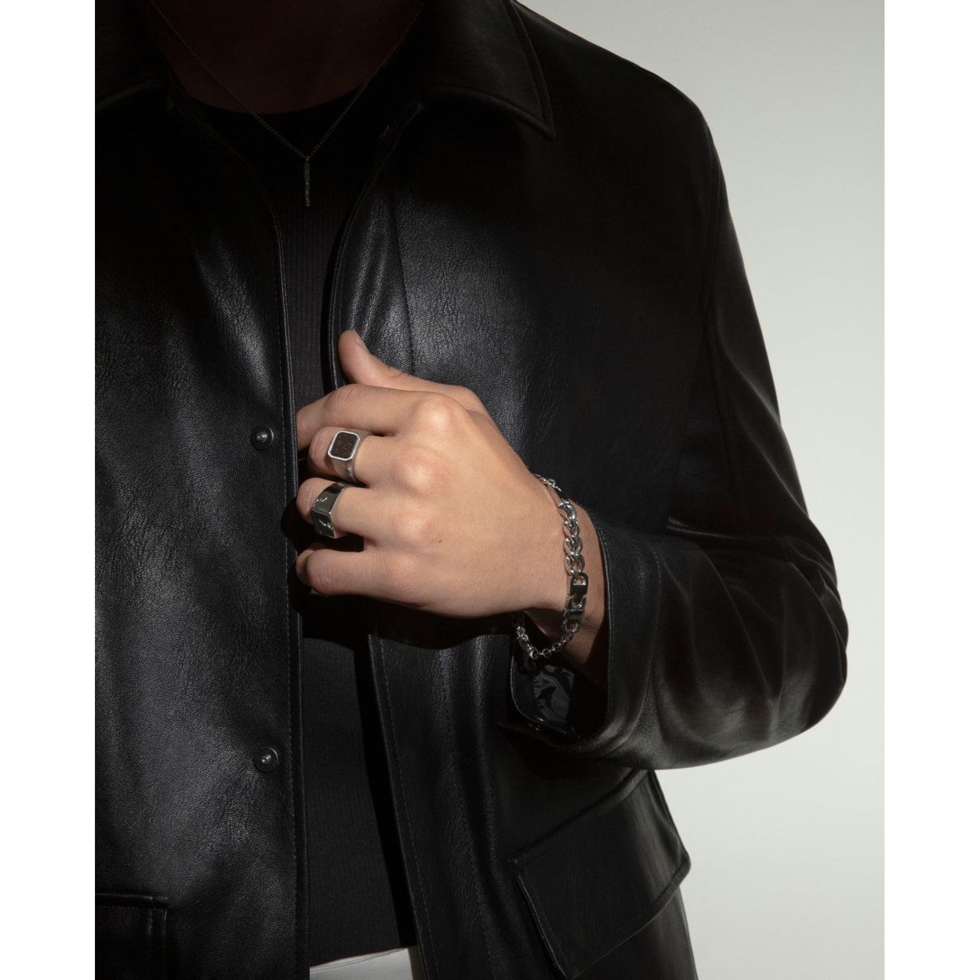 Bracciale da uomo in acciaio intrecciato con pelle nera