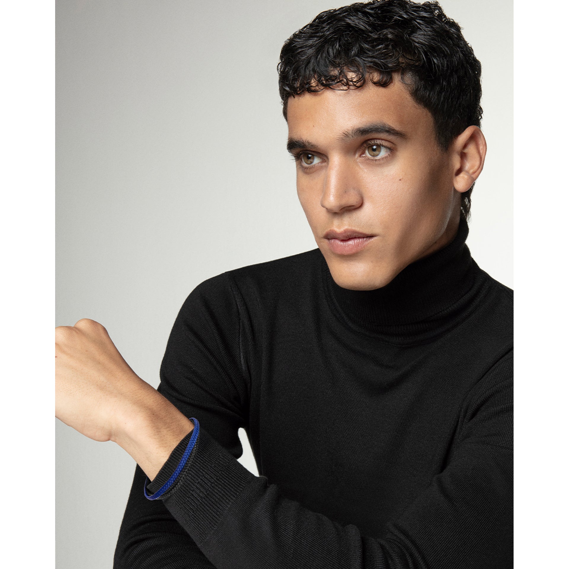 Bracciale da uomo in acciaio Ip nero intrecciato con pelle blu