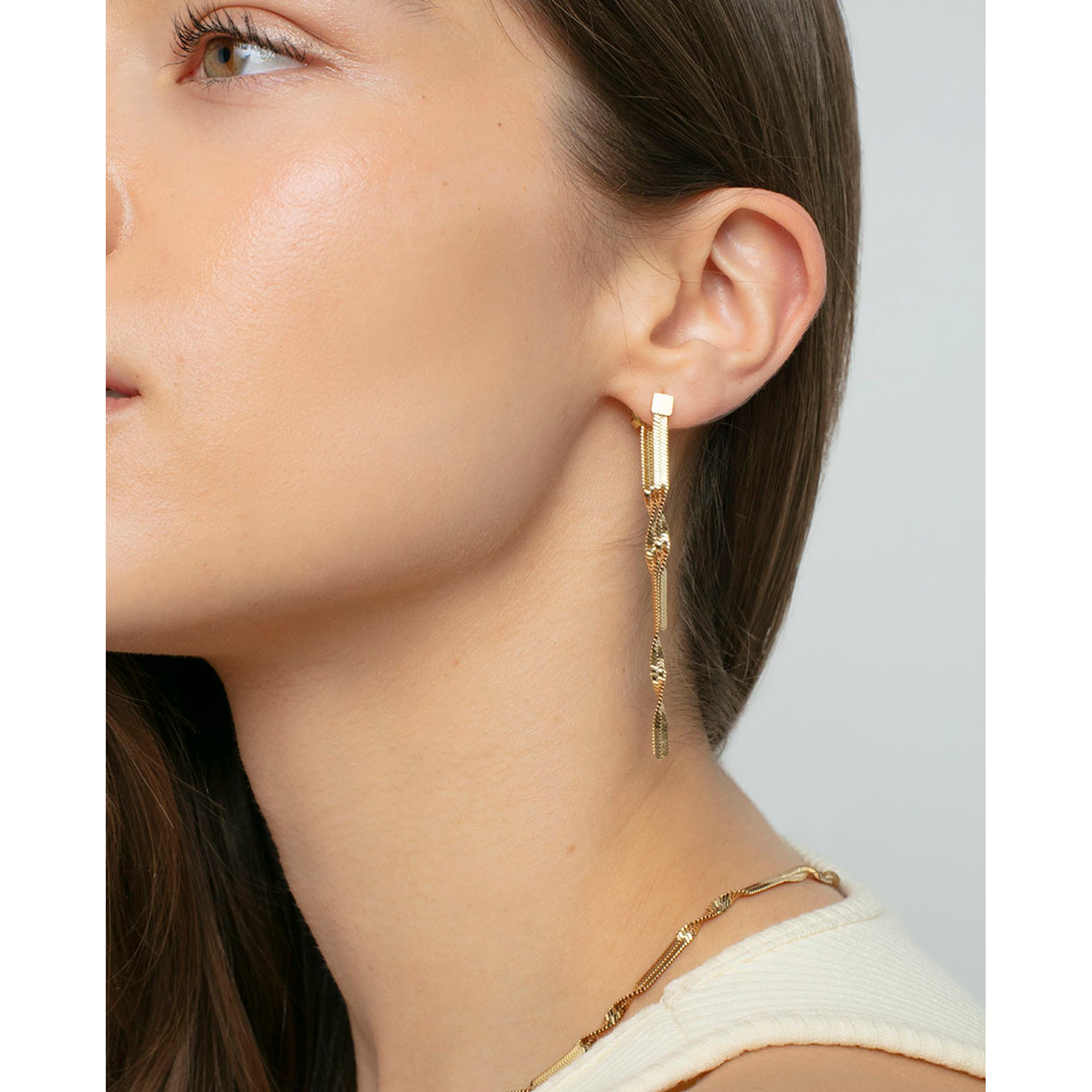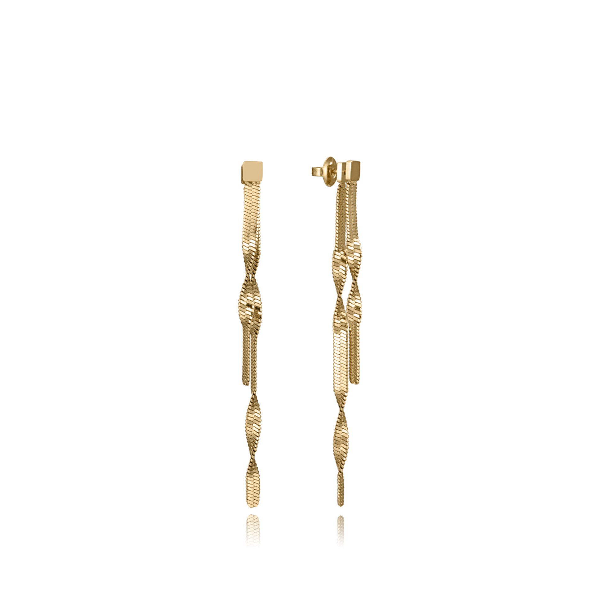 Orecchini da donna con catena doppio serpente in acciaio ip gold