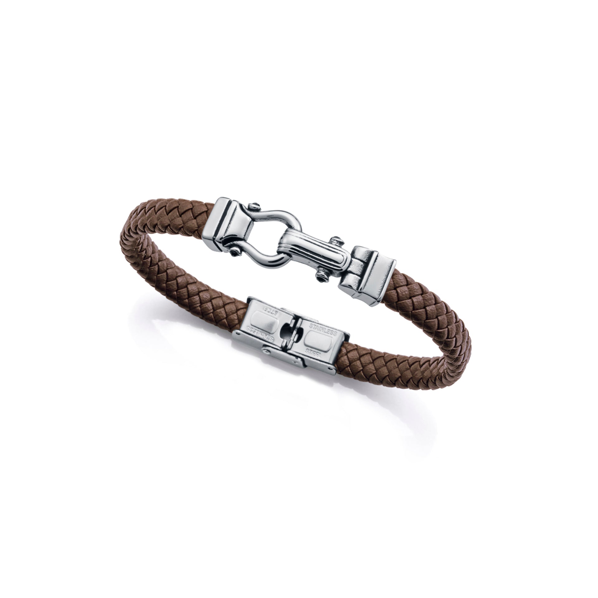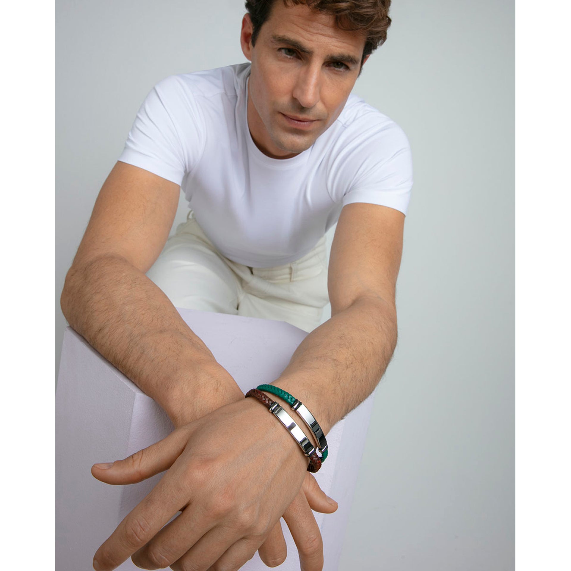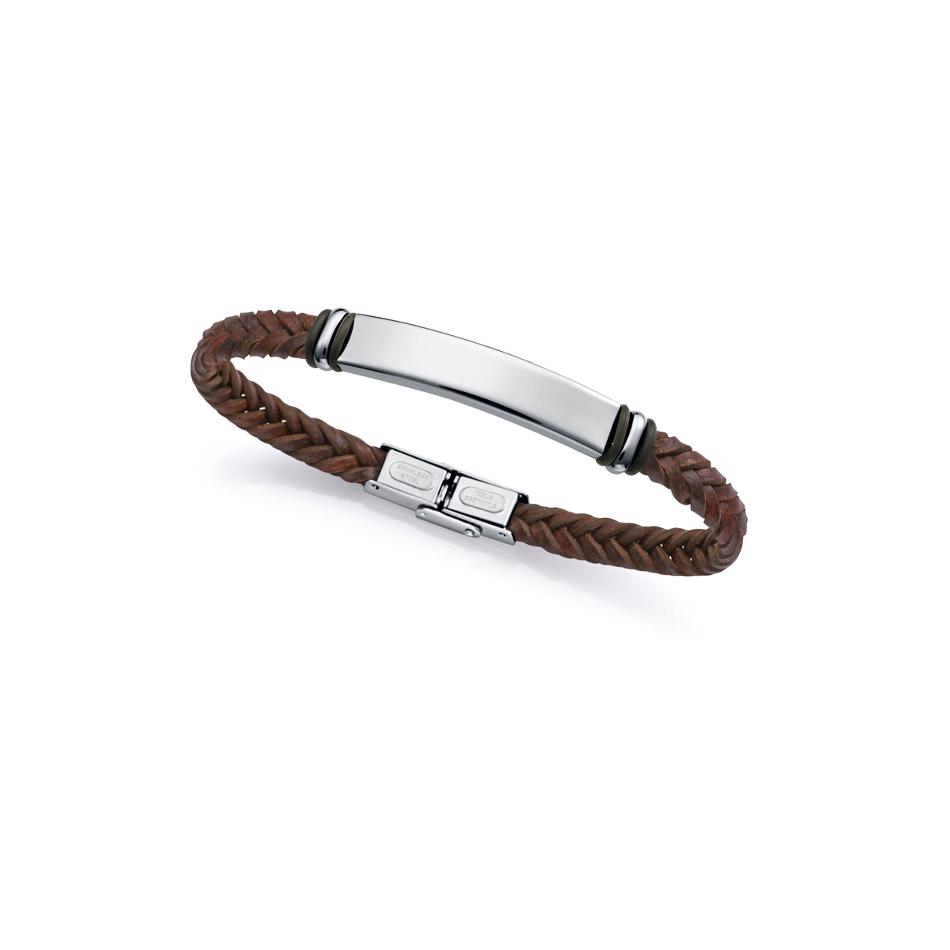 Bracciale da uomo in acciaio e pelle intrecciata marrone