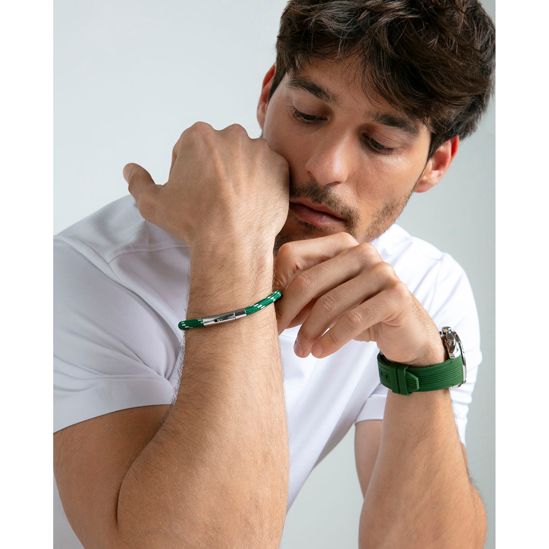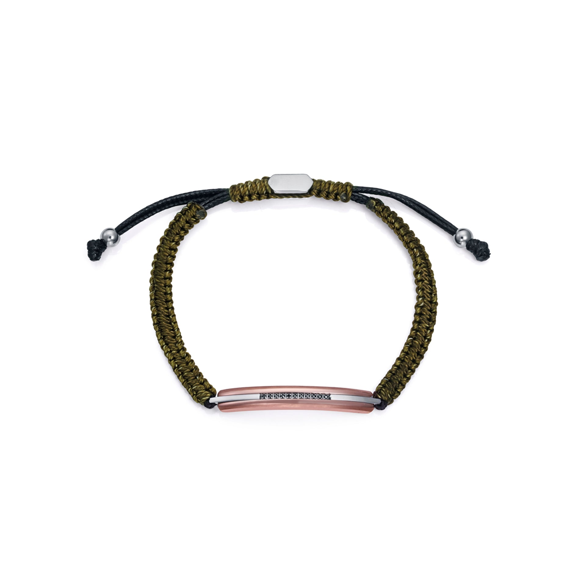 Bracciale da uomo in acciaio Ip rosa con cordino verde e zirconi