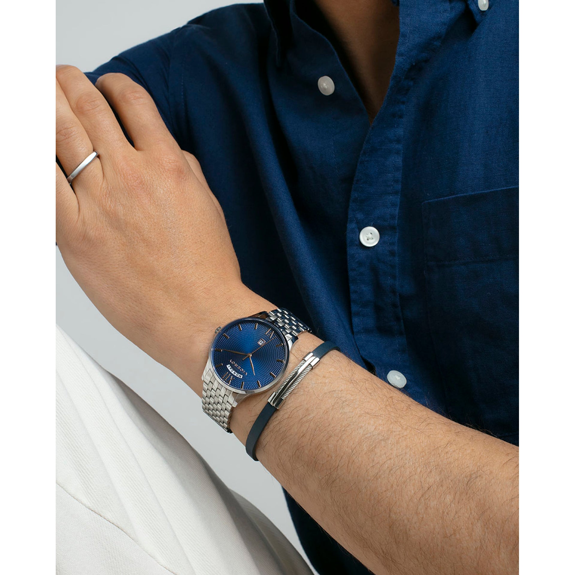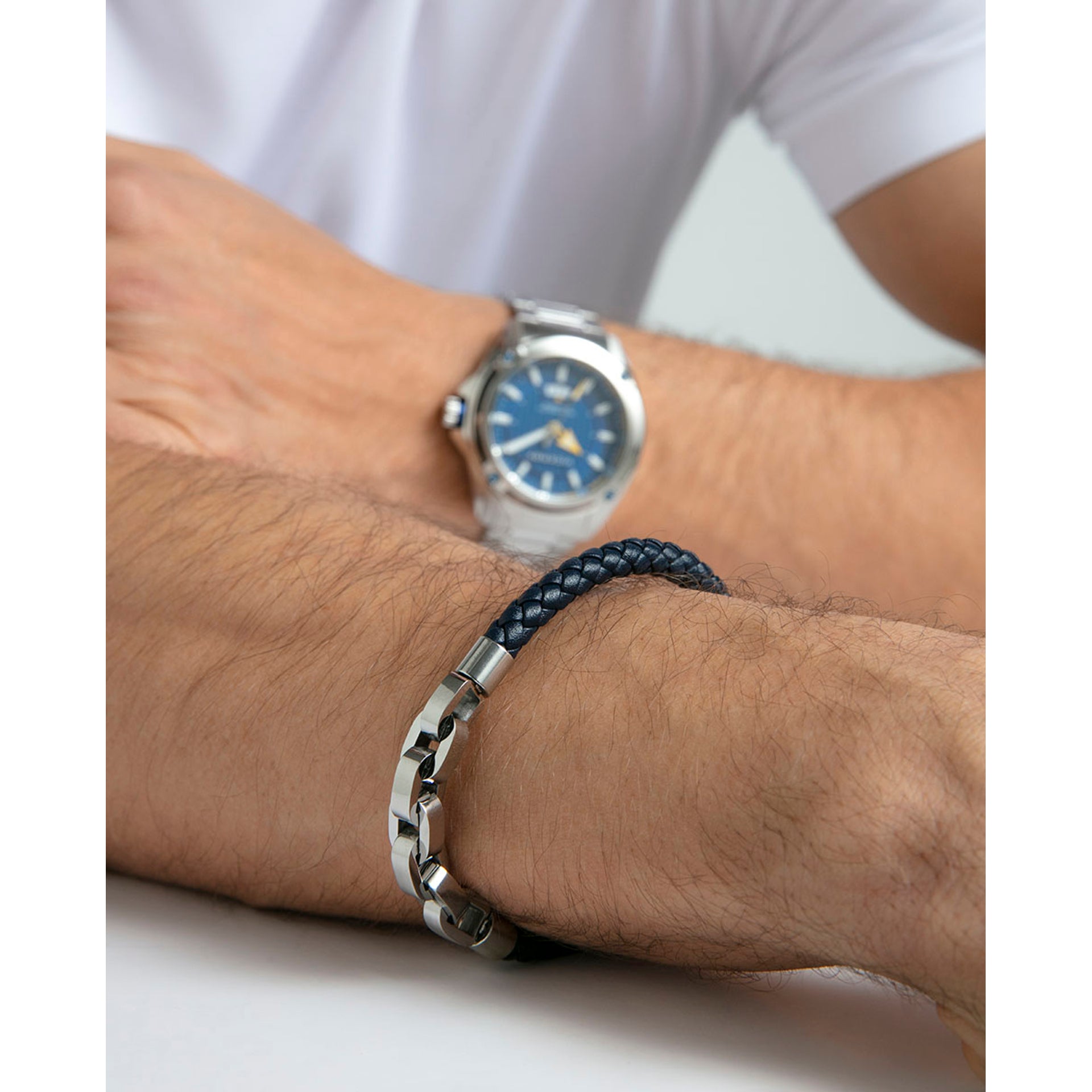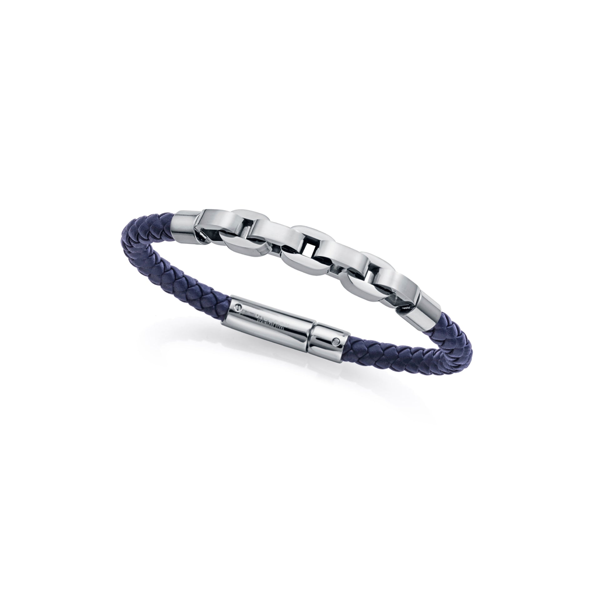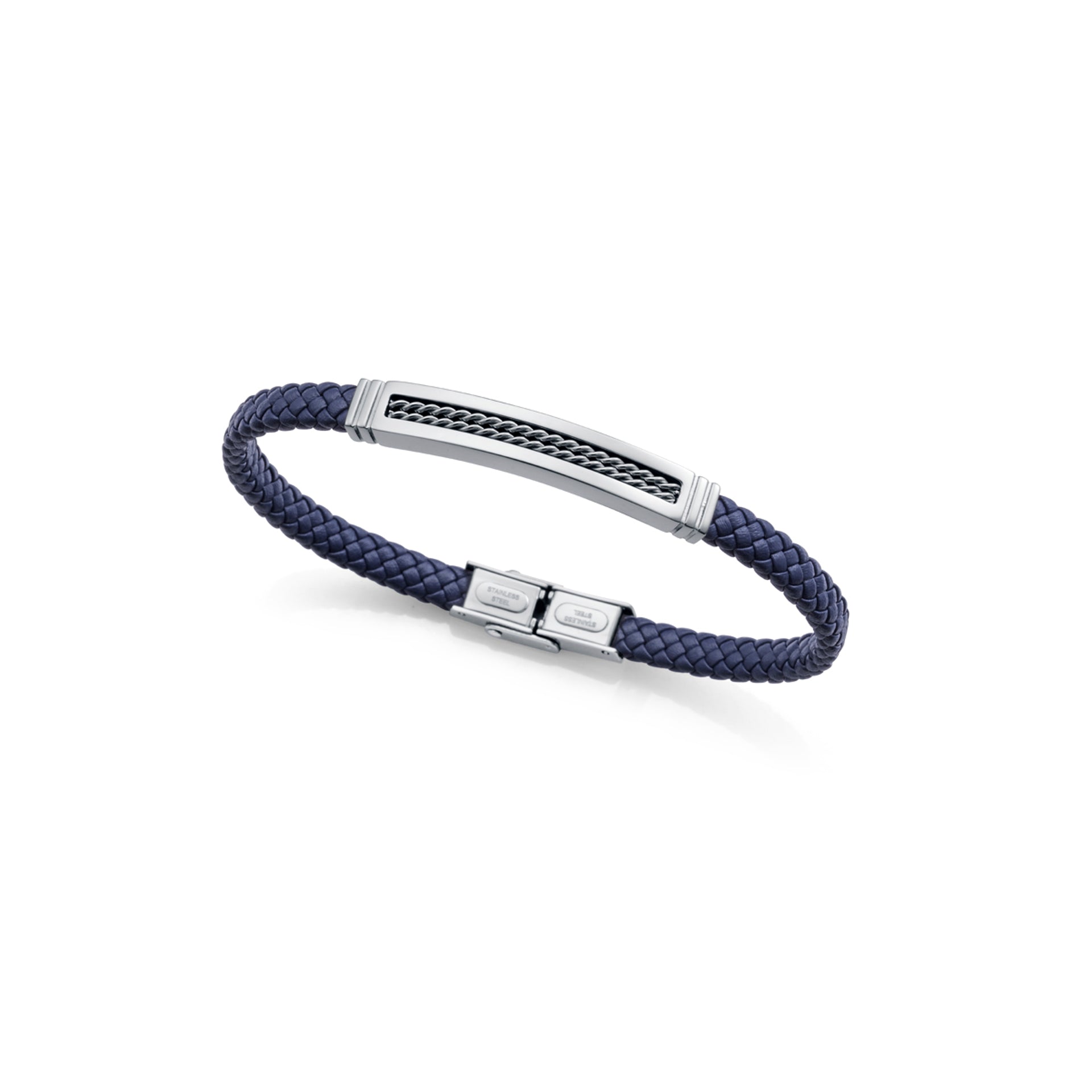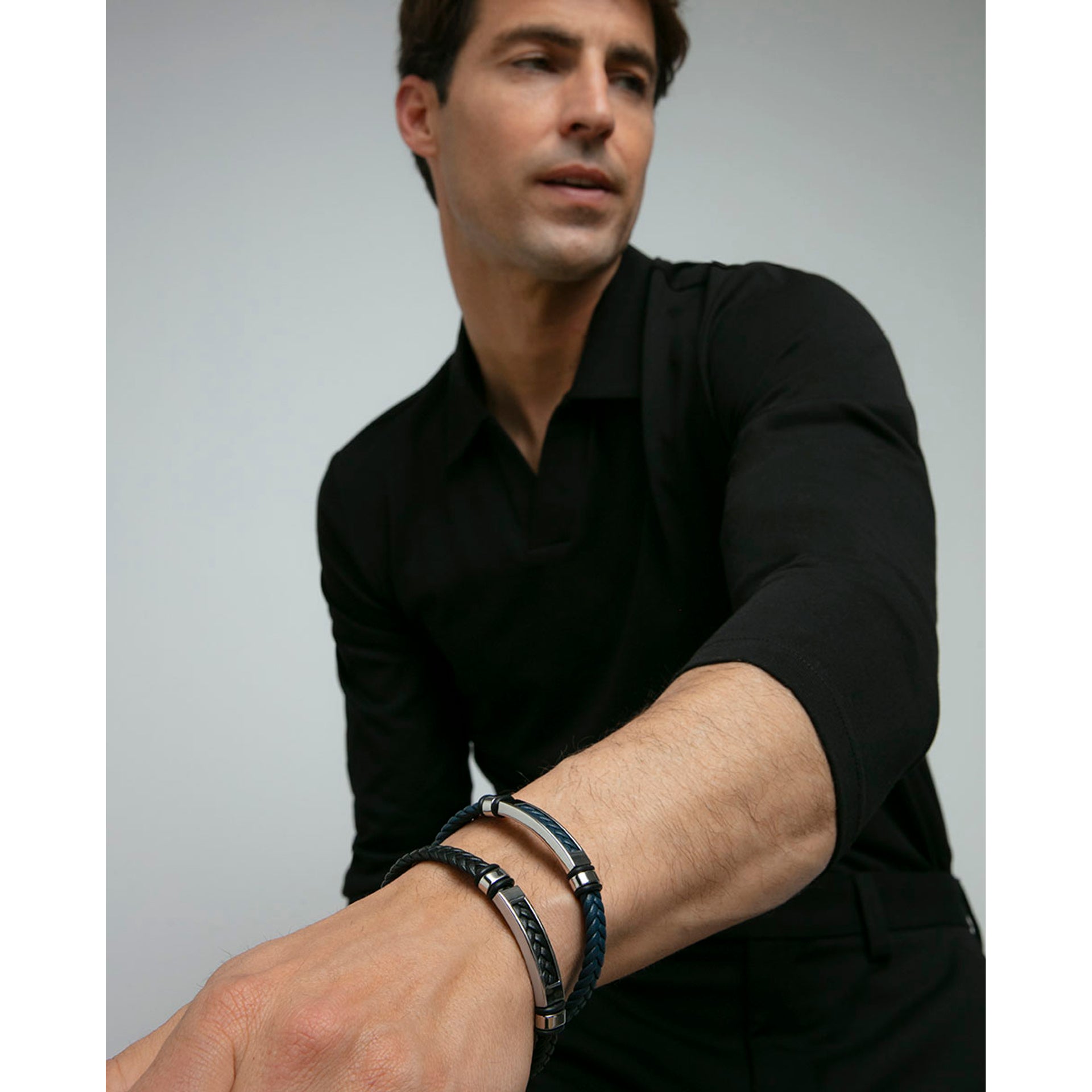 Bracciale da uomo in acciaio e pelle intrecciata blu