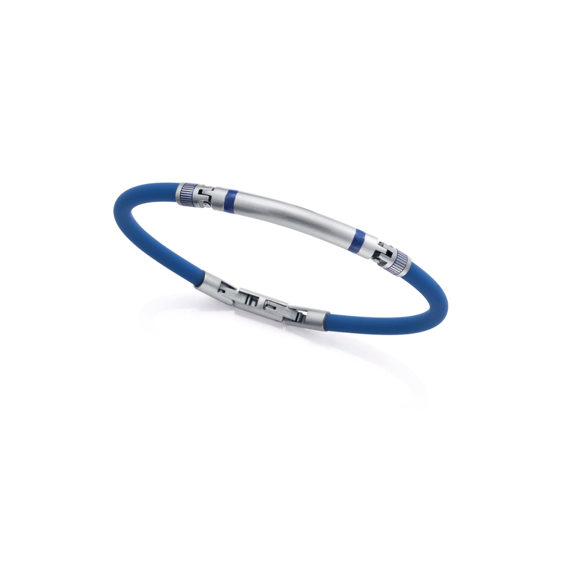 Bracciale da uomo realizzato in acciaio nero e pezzo intrecciato blu