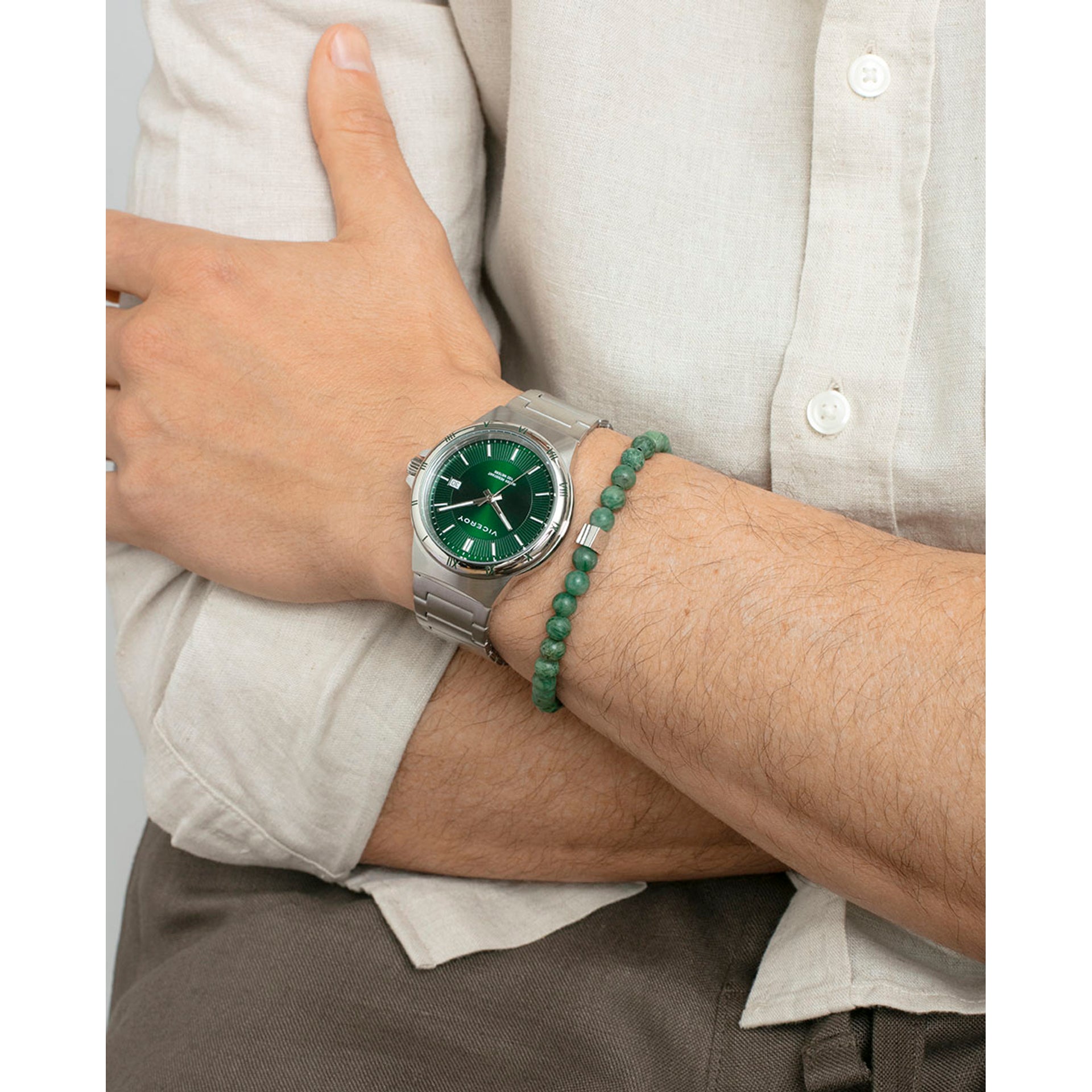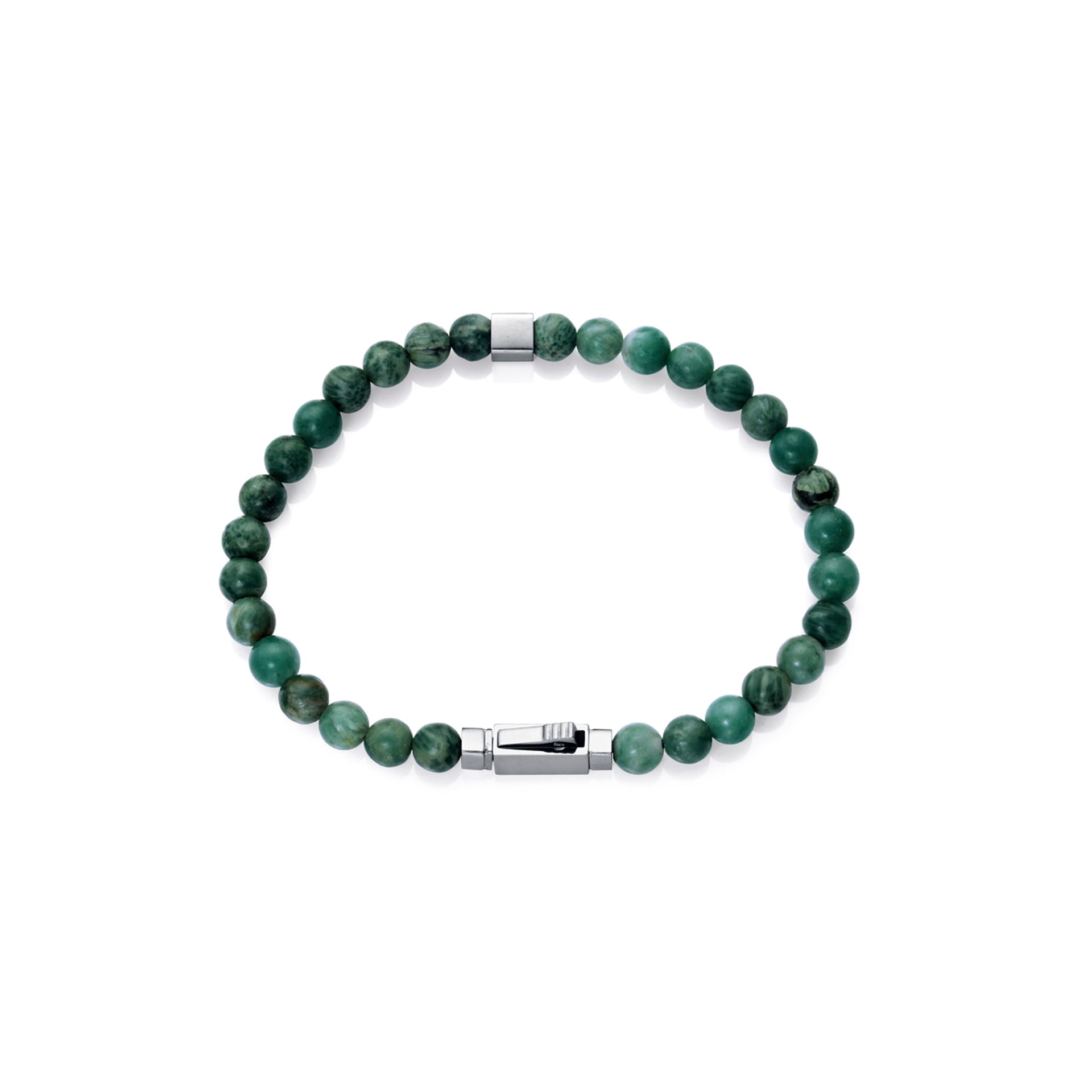 Bracciale da uomo realizzato in acciaio e pietre naturali verdi