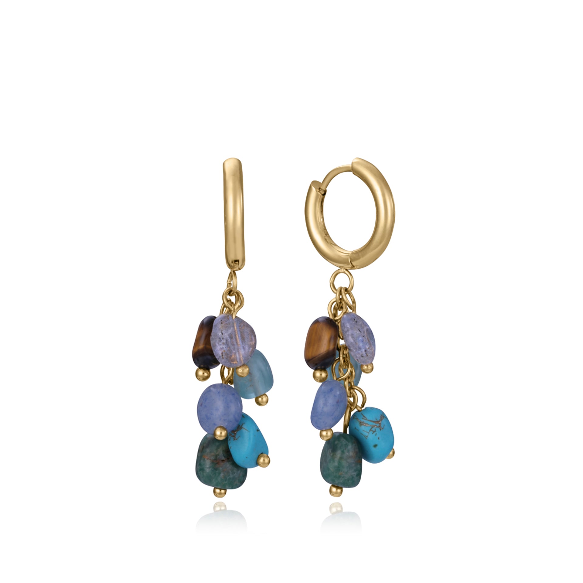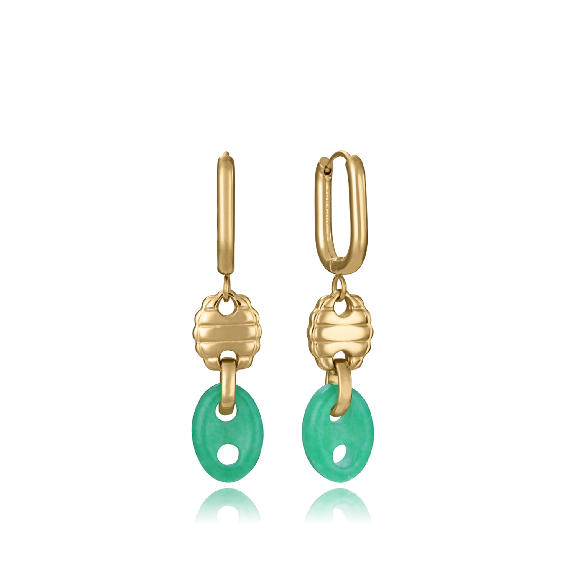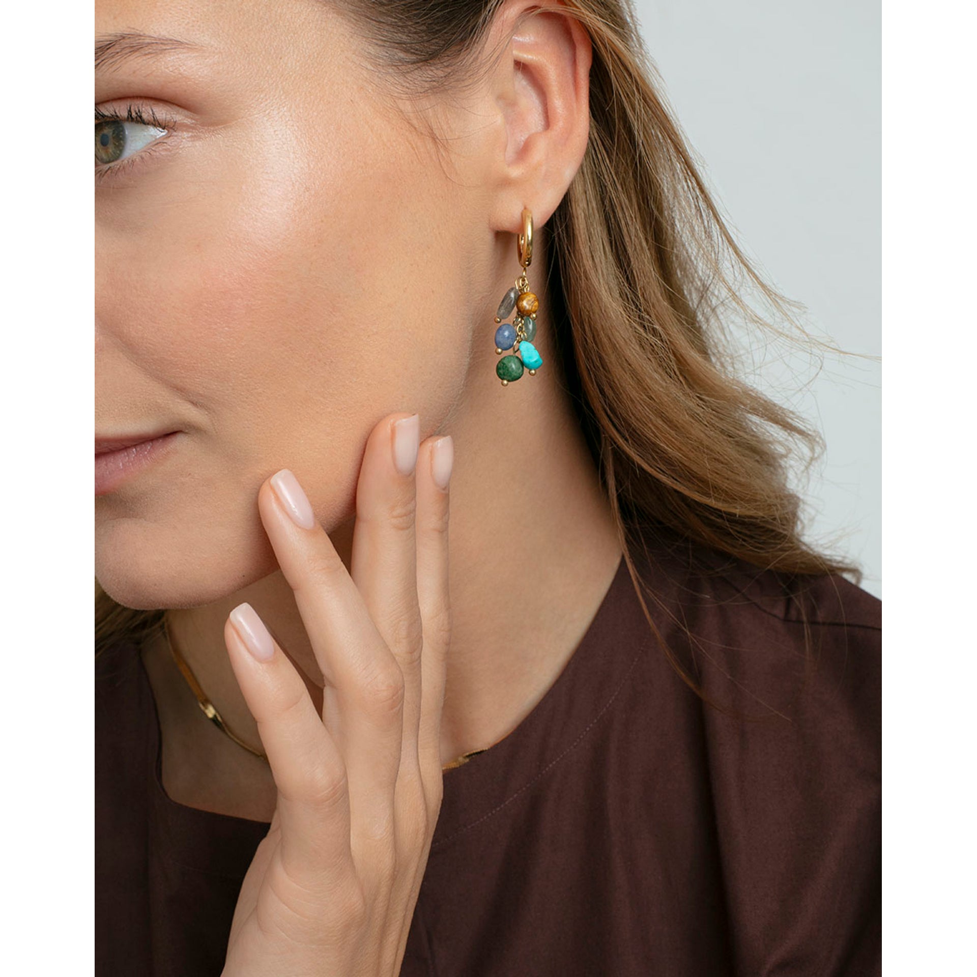 Orecchini da donna in acciaio Ip gold con catena e pietre naturali