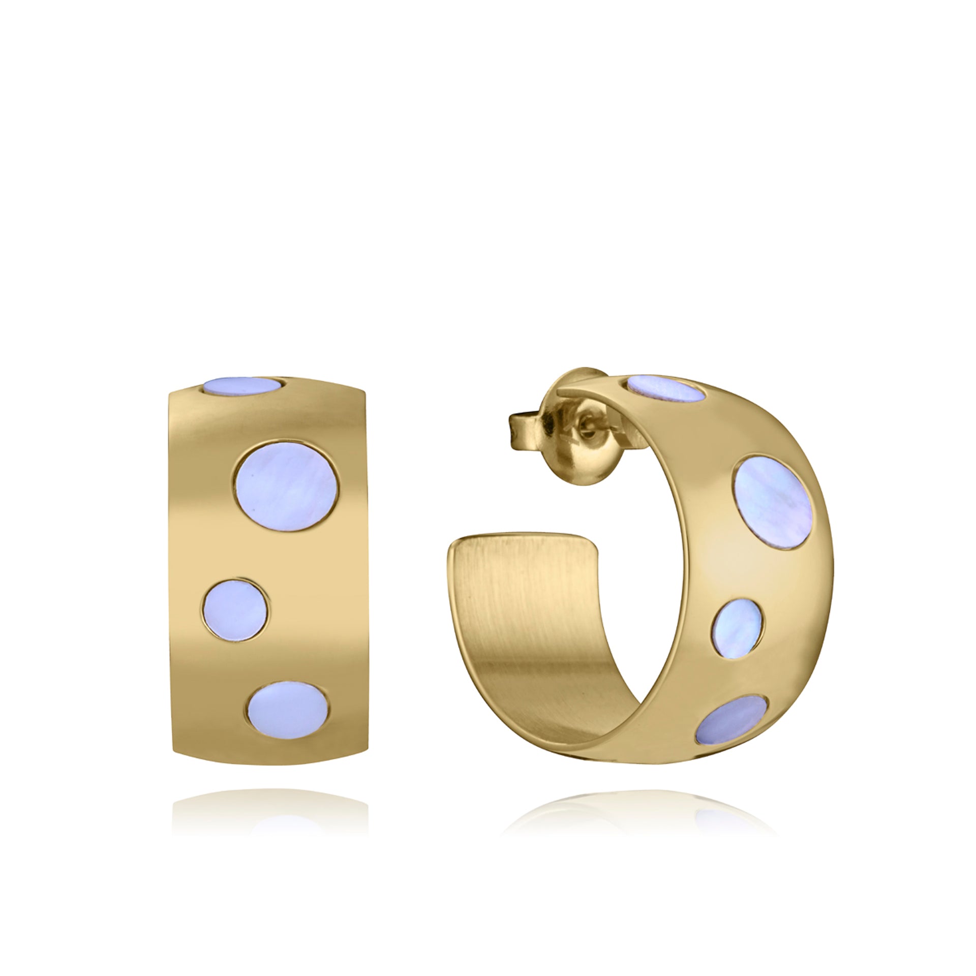 Orecchini da donna a cerchio in acciaio Ip gold con pietre