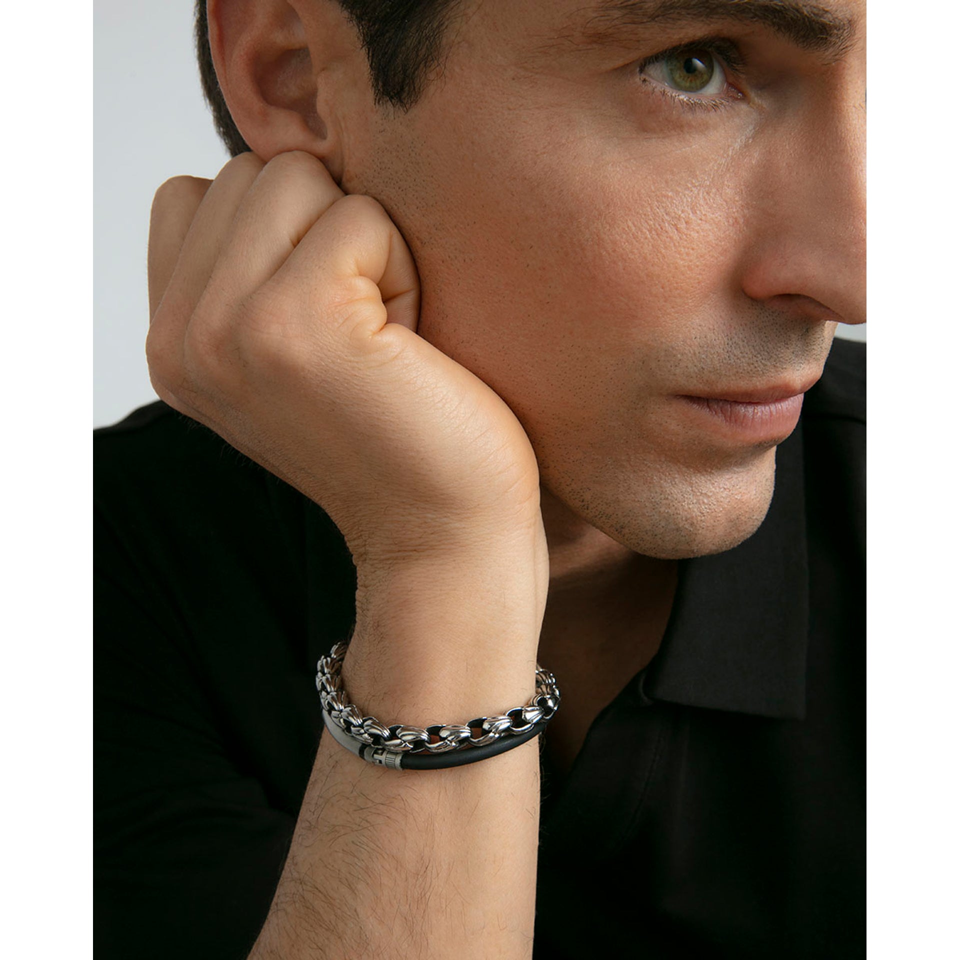 Bracciale da uomo realizzato in acciaio e Ip nero