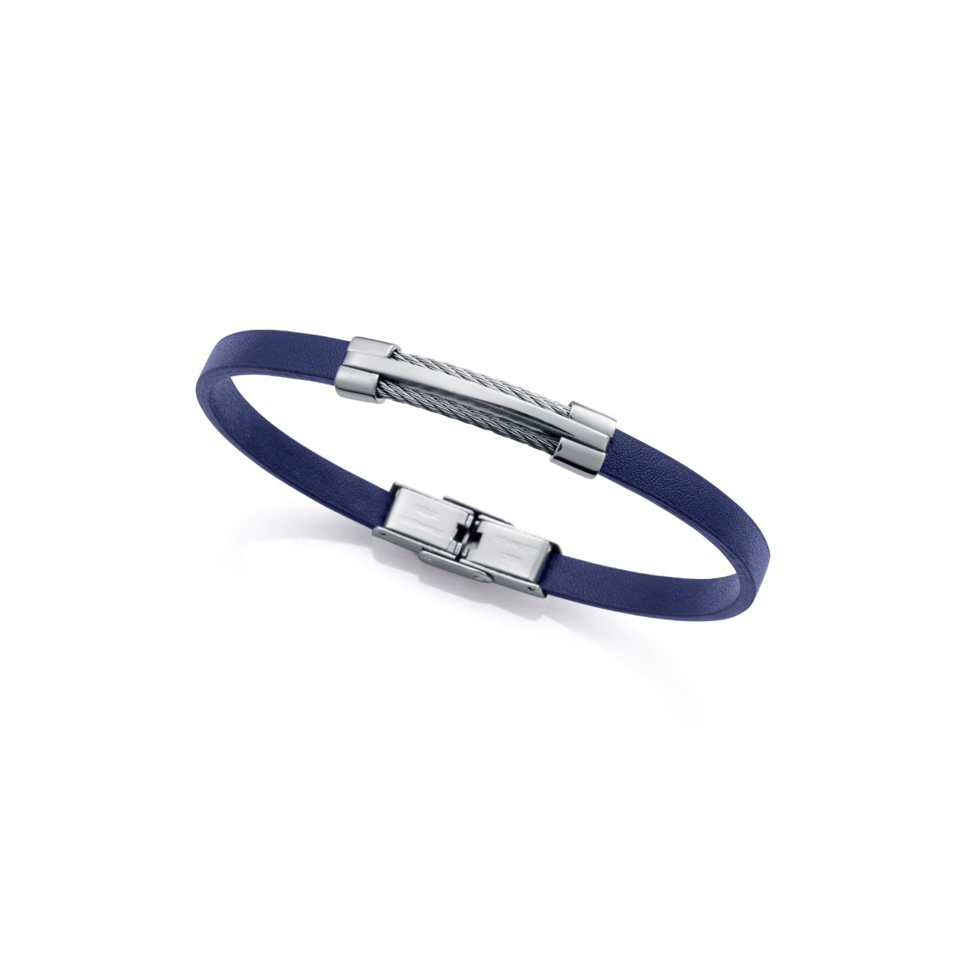 Bracciale da donna in acciaio e pelle blu doppio intrecciato