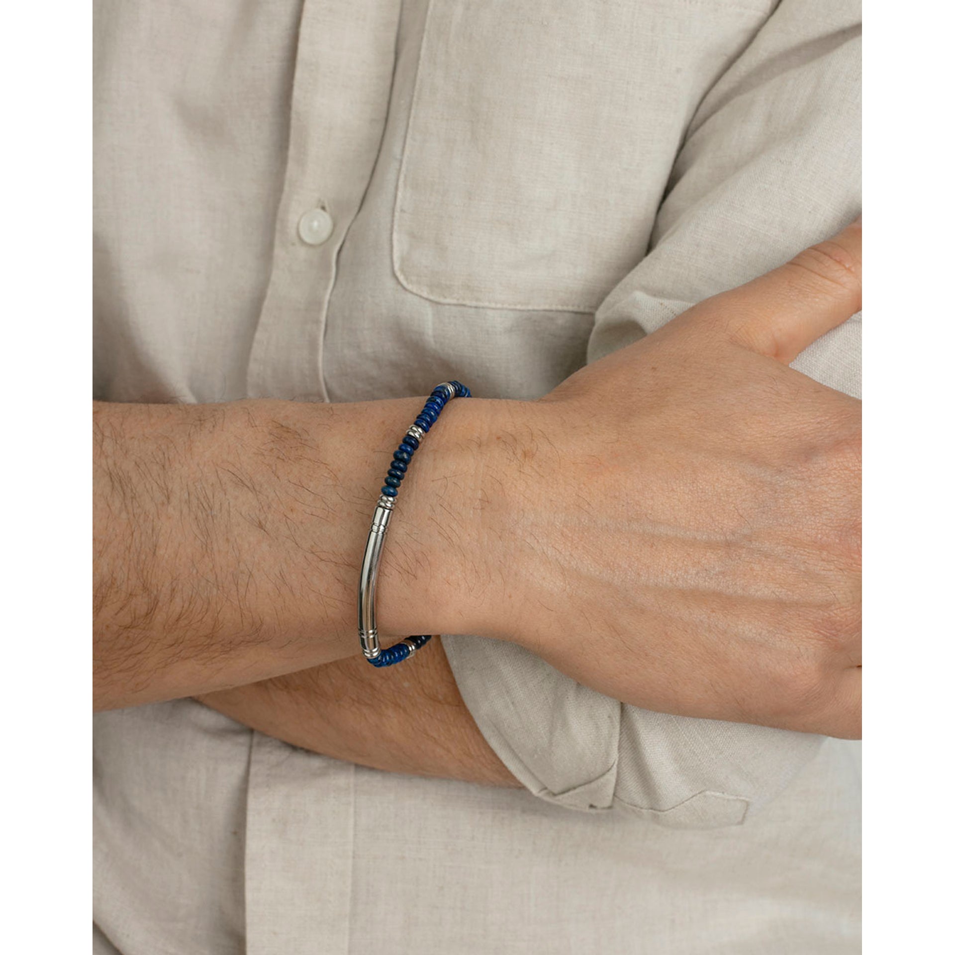 Bracciale da uomo realizzato in acciaio e pietre naturali