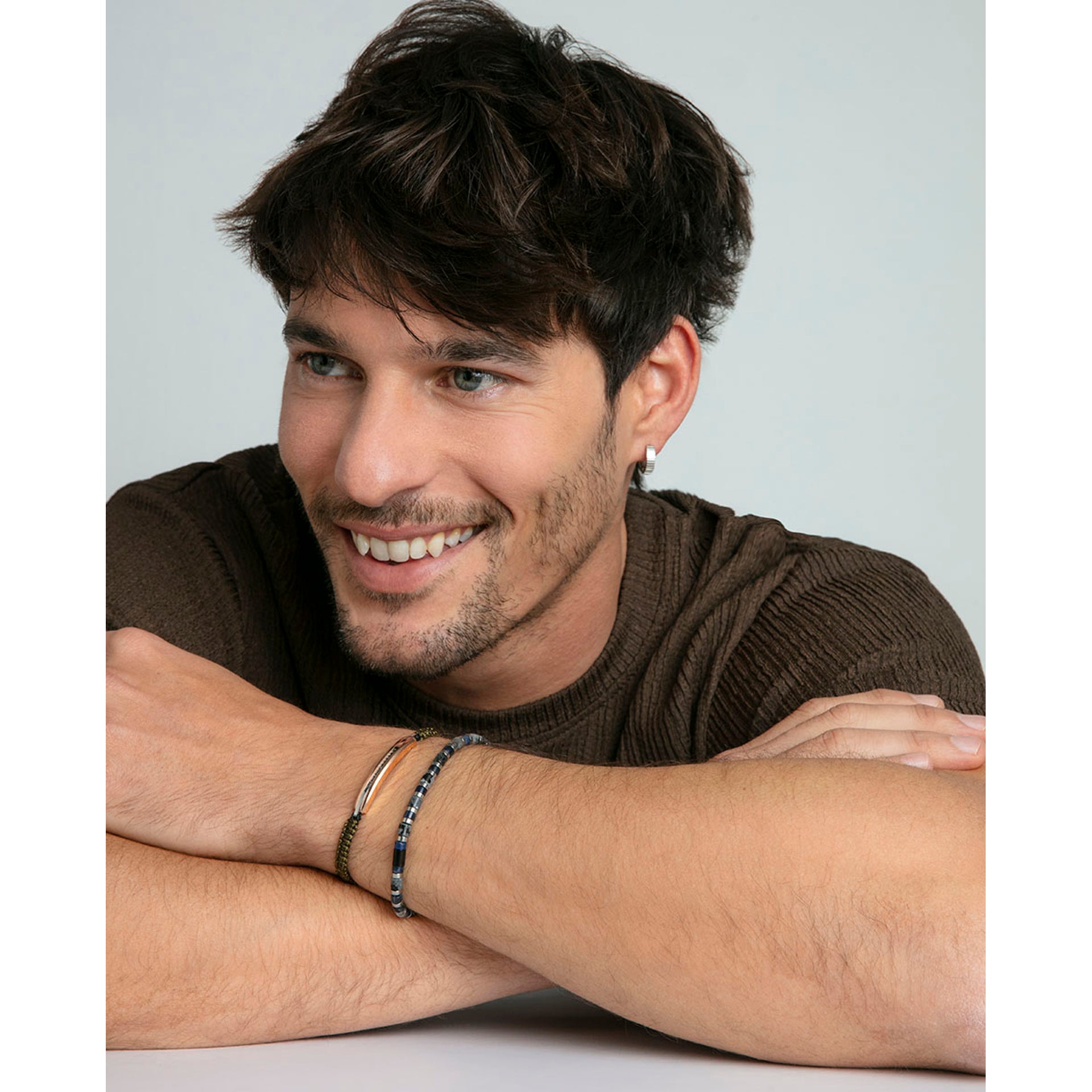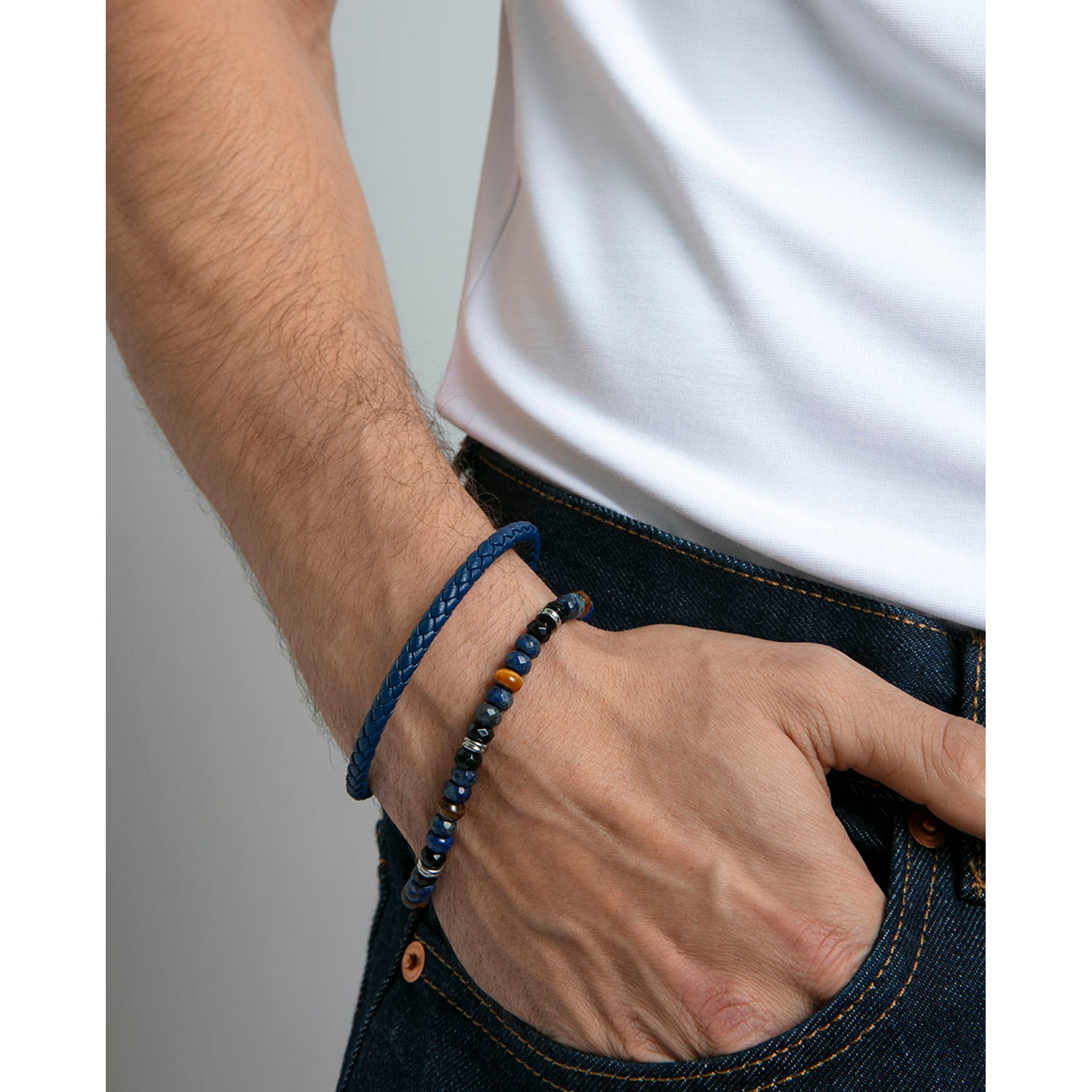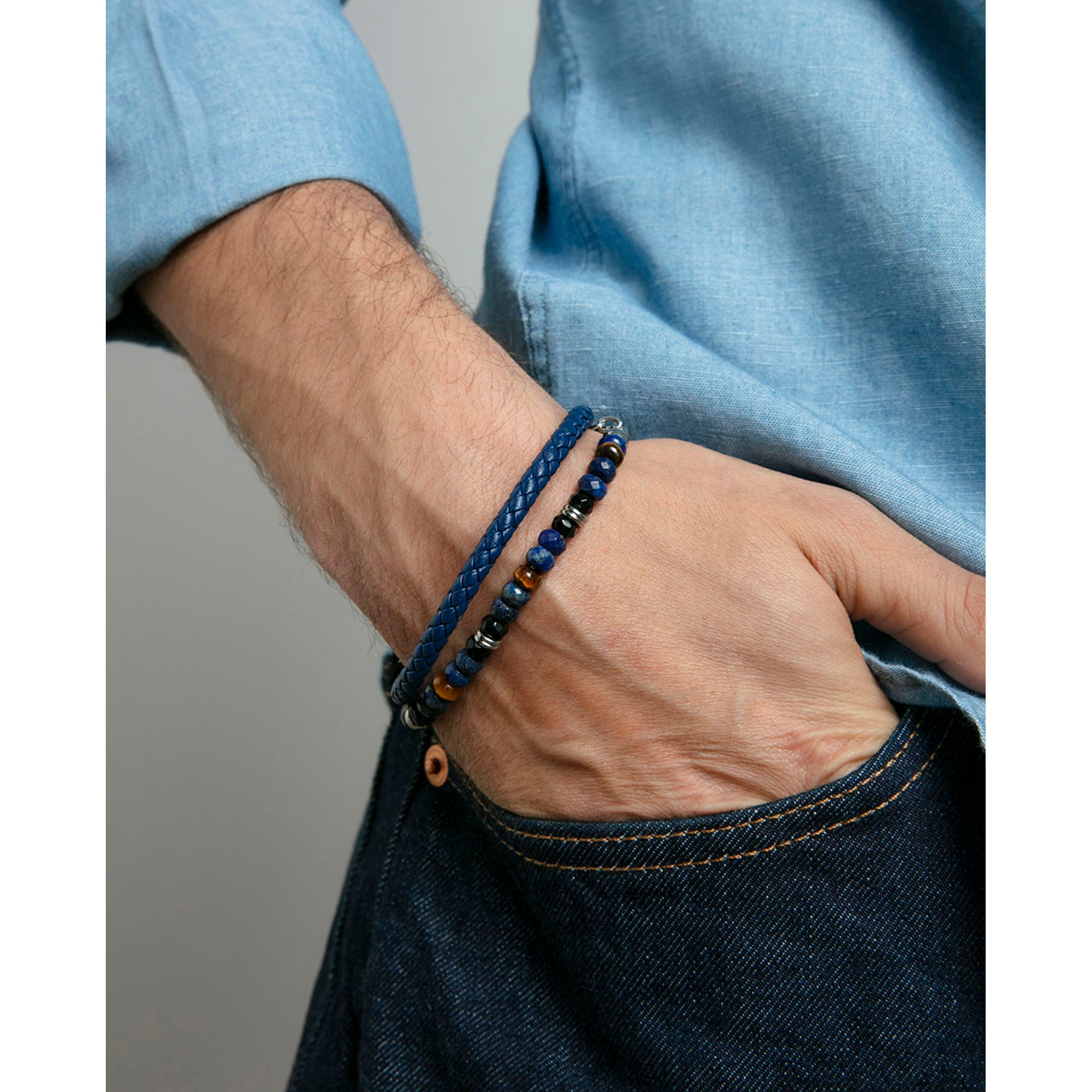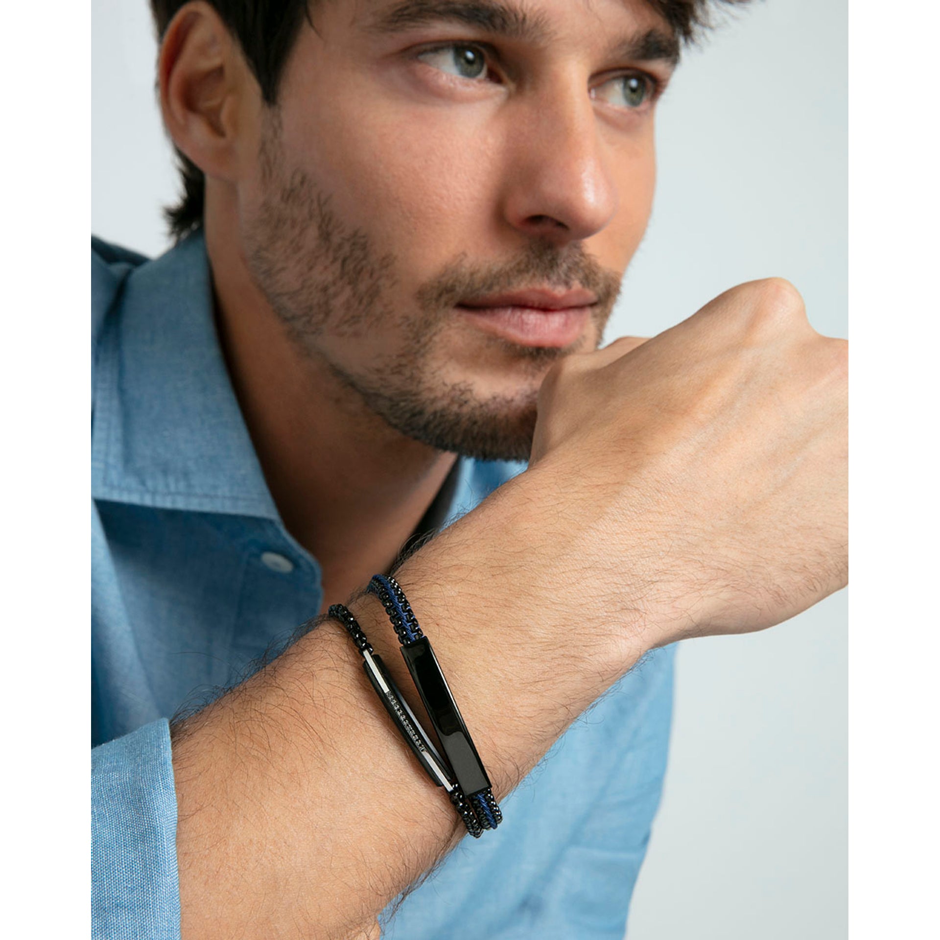 Bracciale da uomo realizzato in acciaio nero e pezzo intrecciato blu