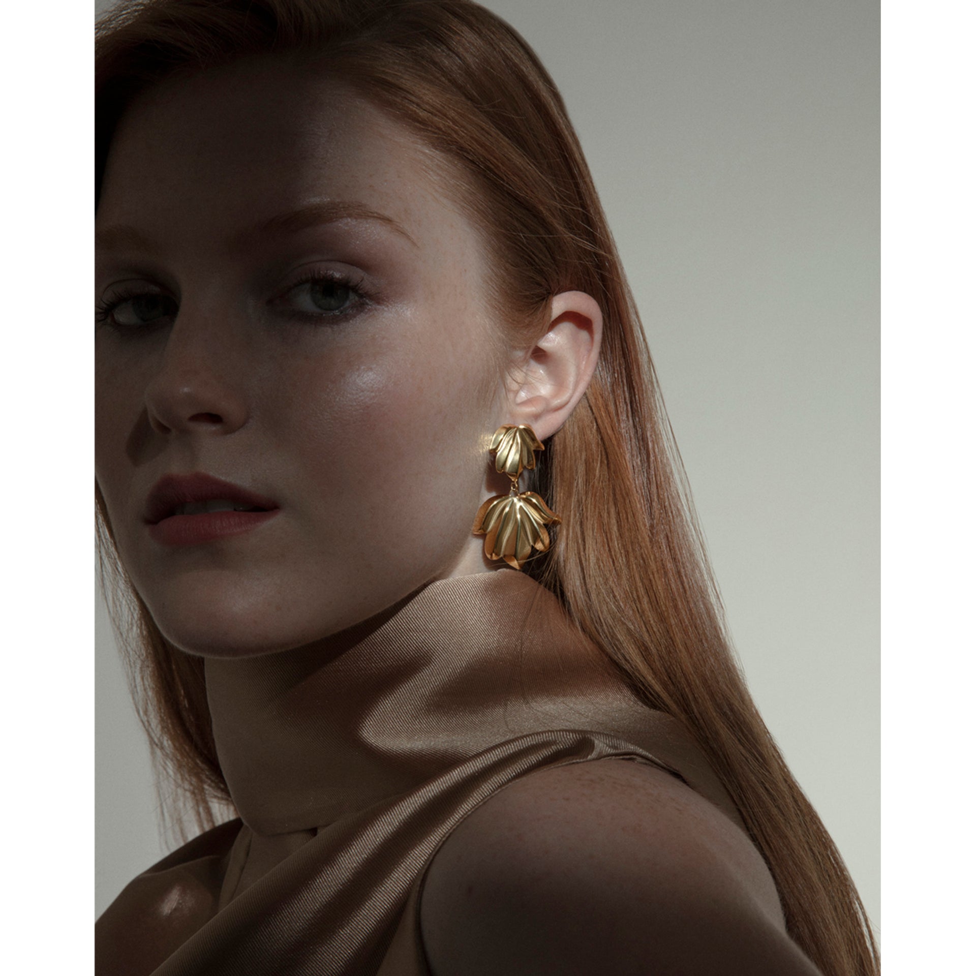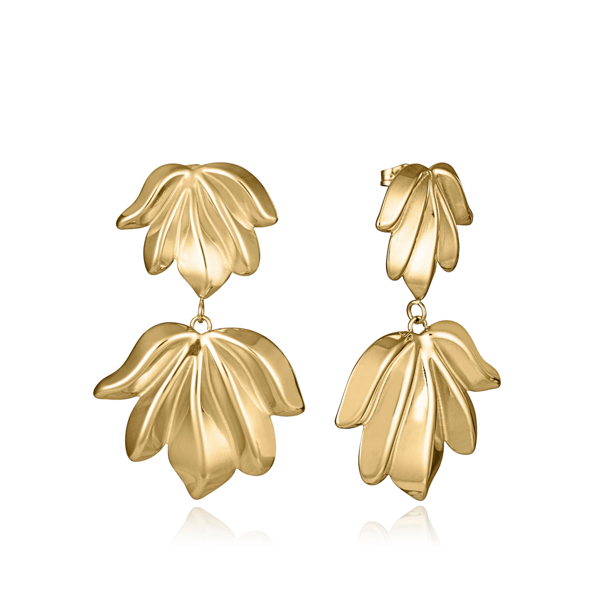 Orecchini da donna in acciaio Ip dorato a forma di foglia