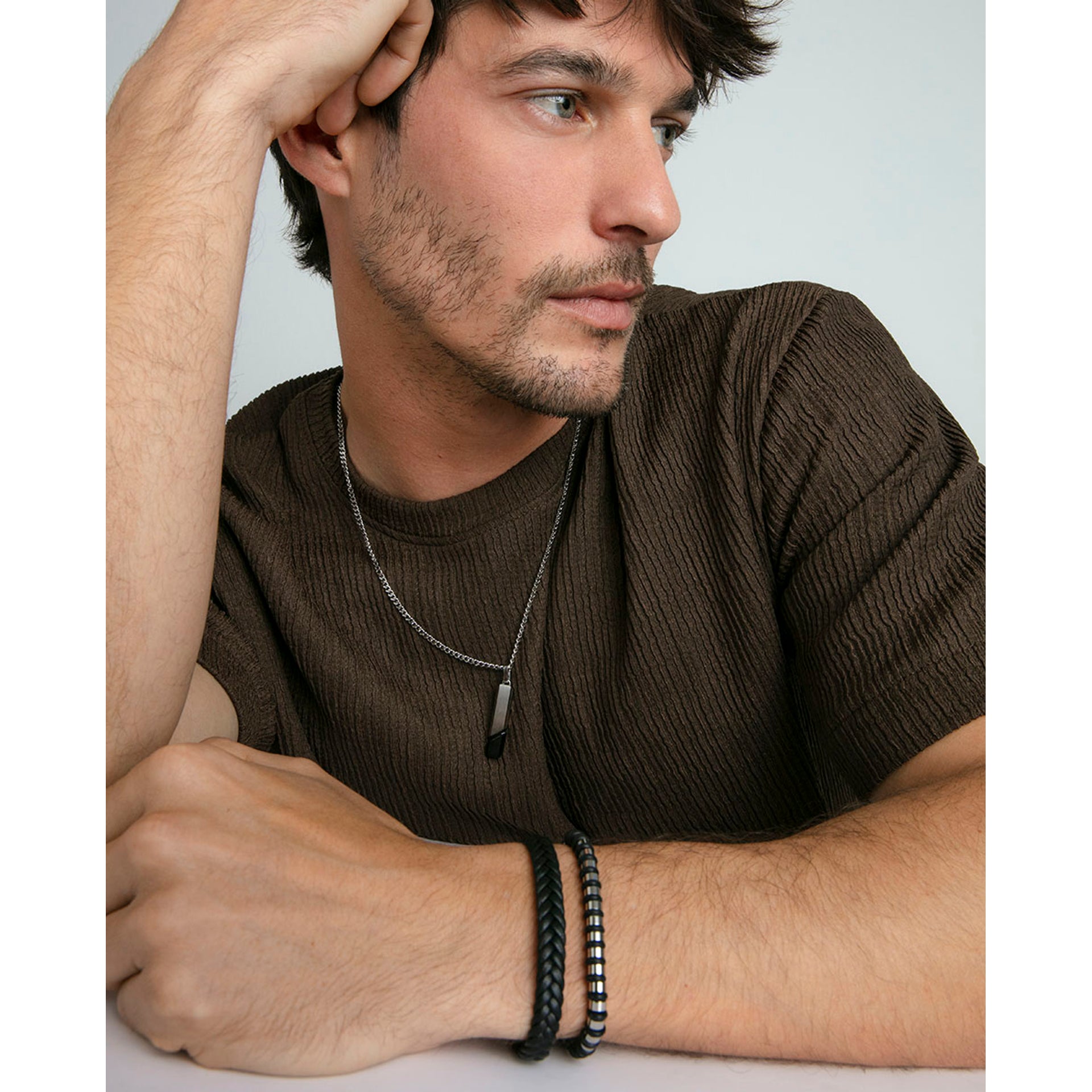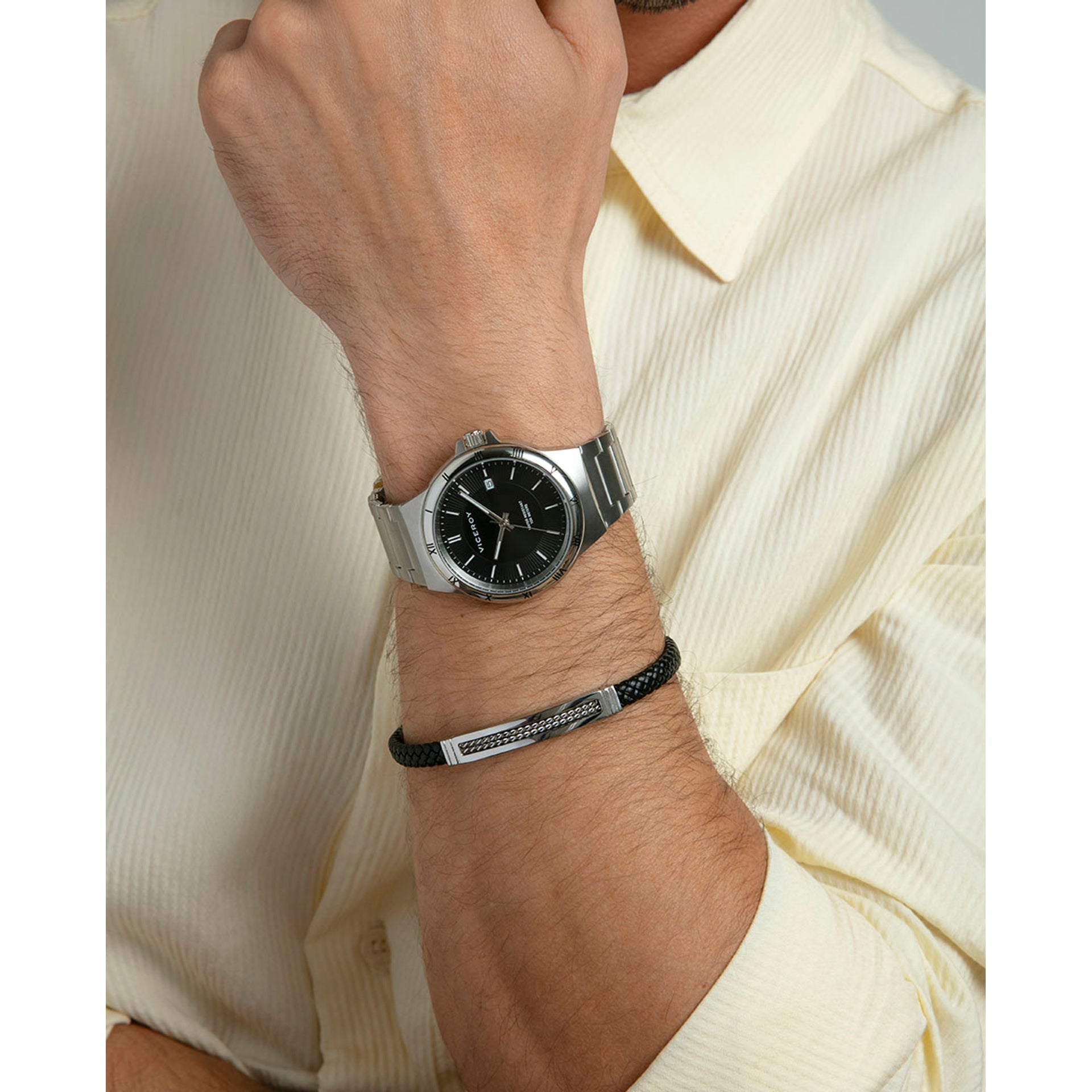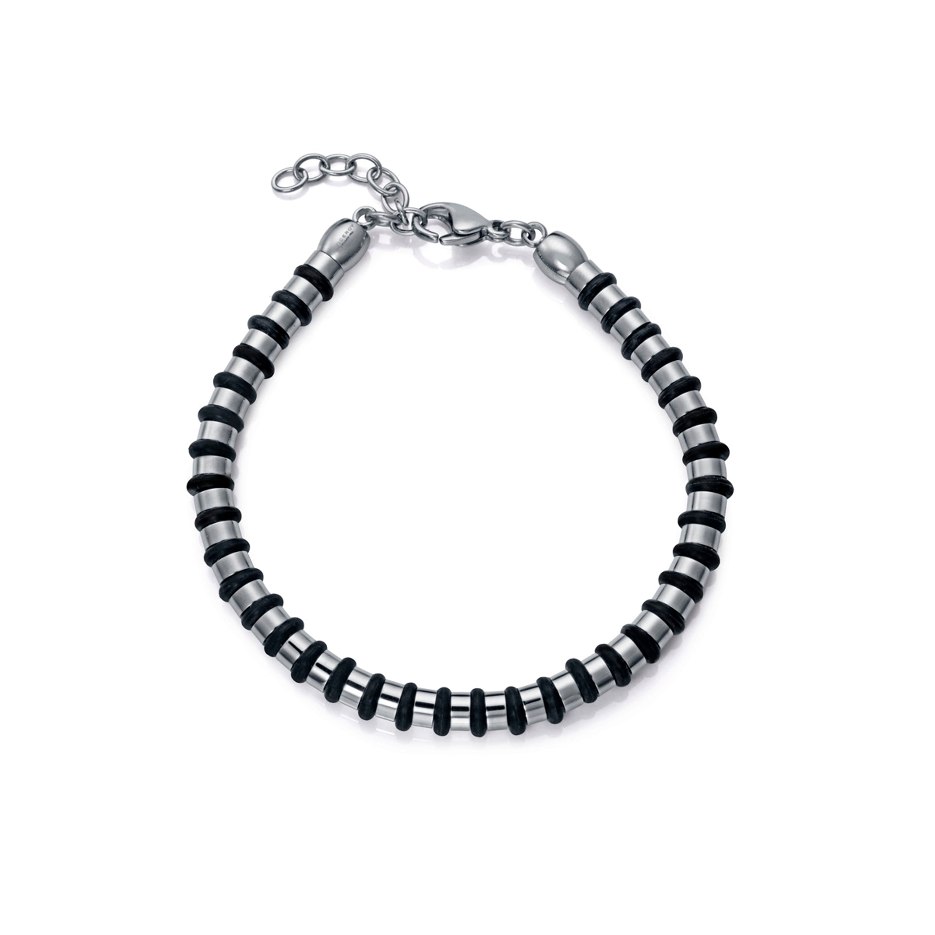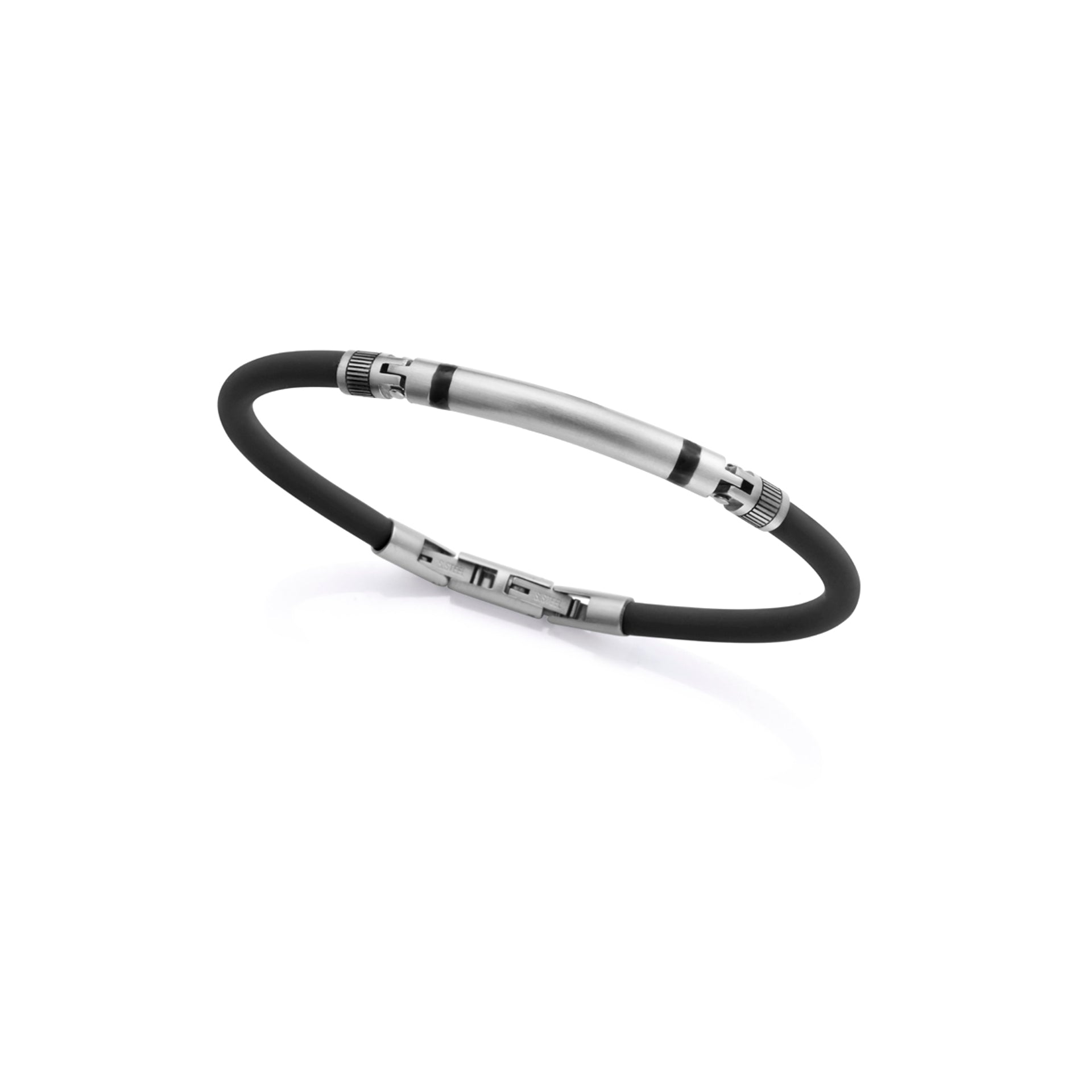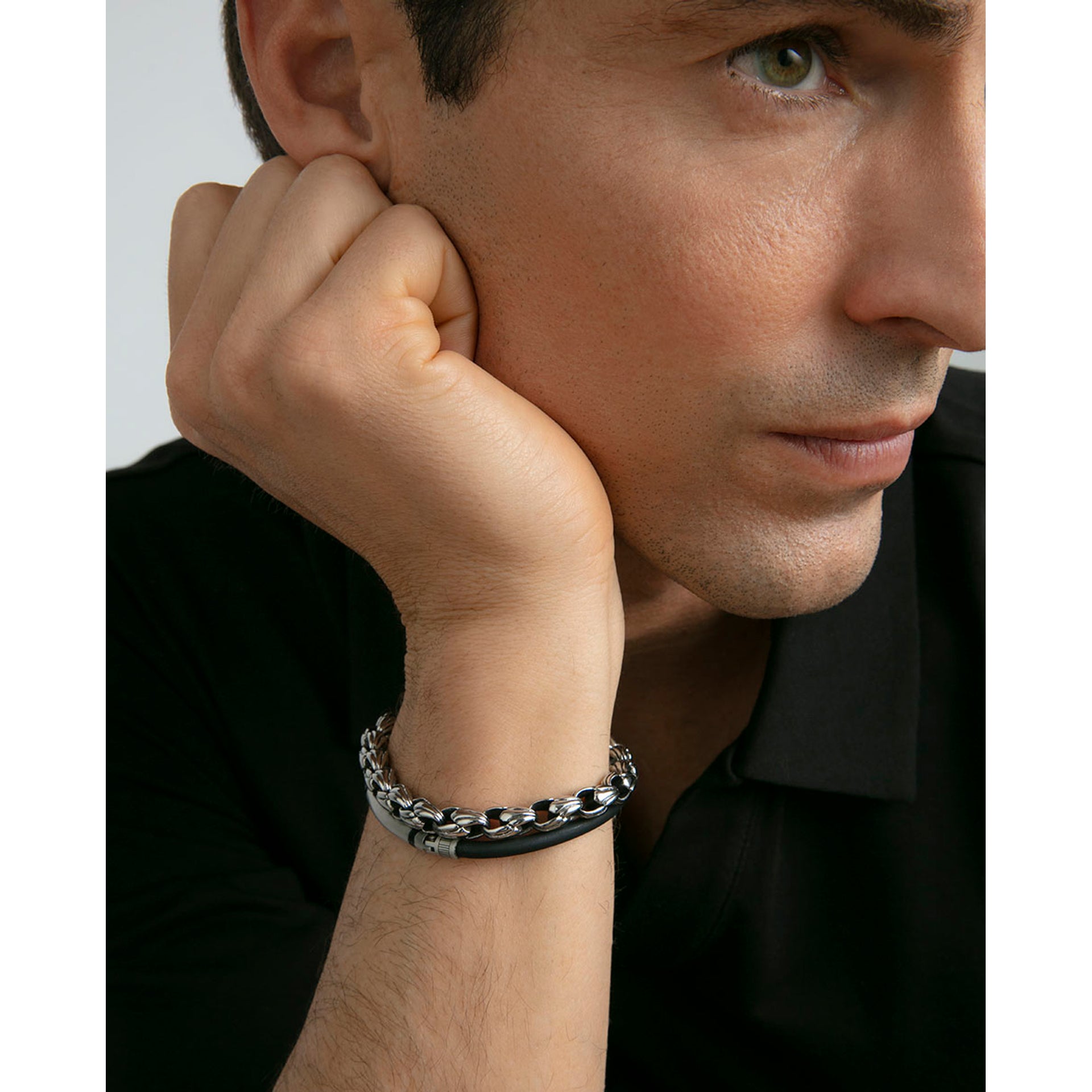 Bracciale da uomo realizzato in acciaio e silicone nero intervallato