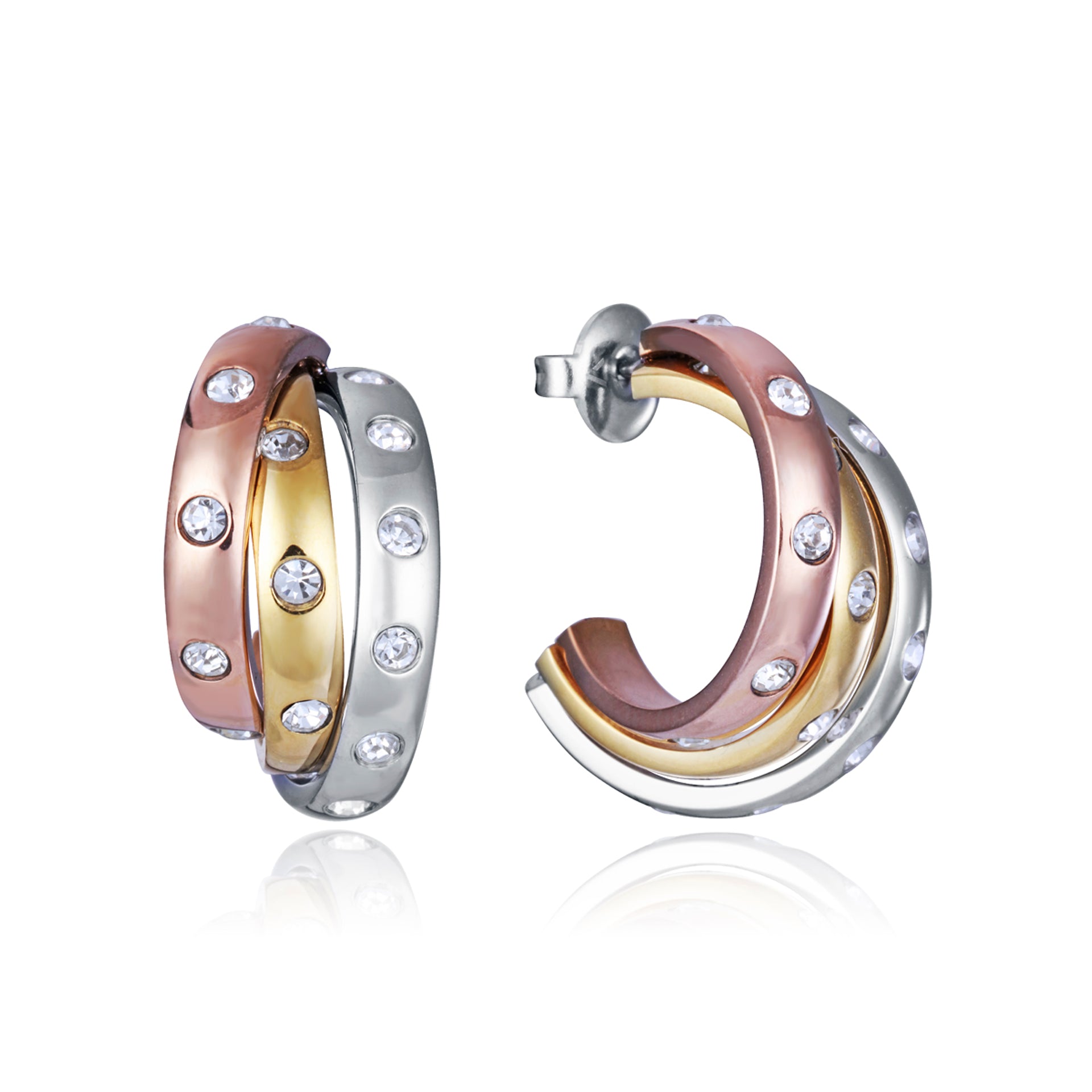 Orecchini da donna in acciaio con tre cerchi aperti in tre tonalità