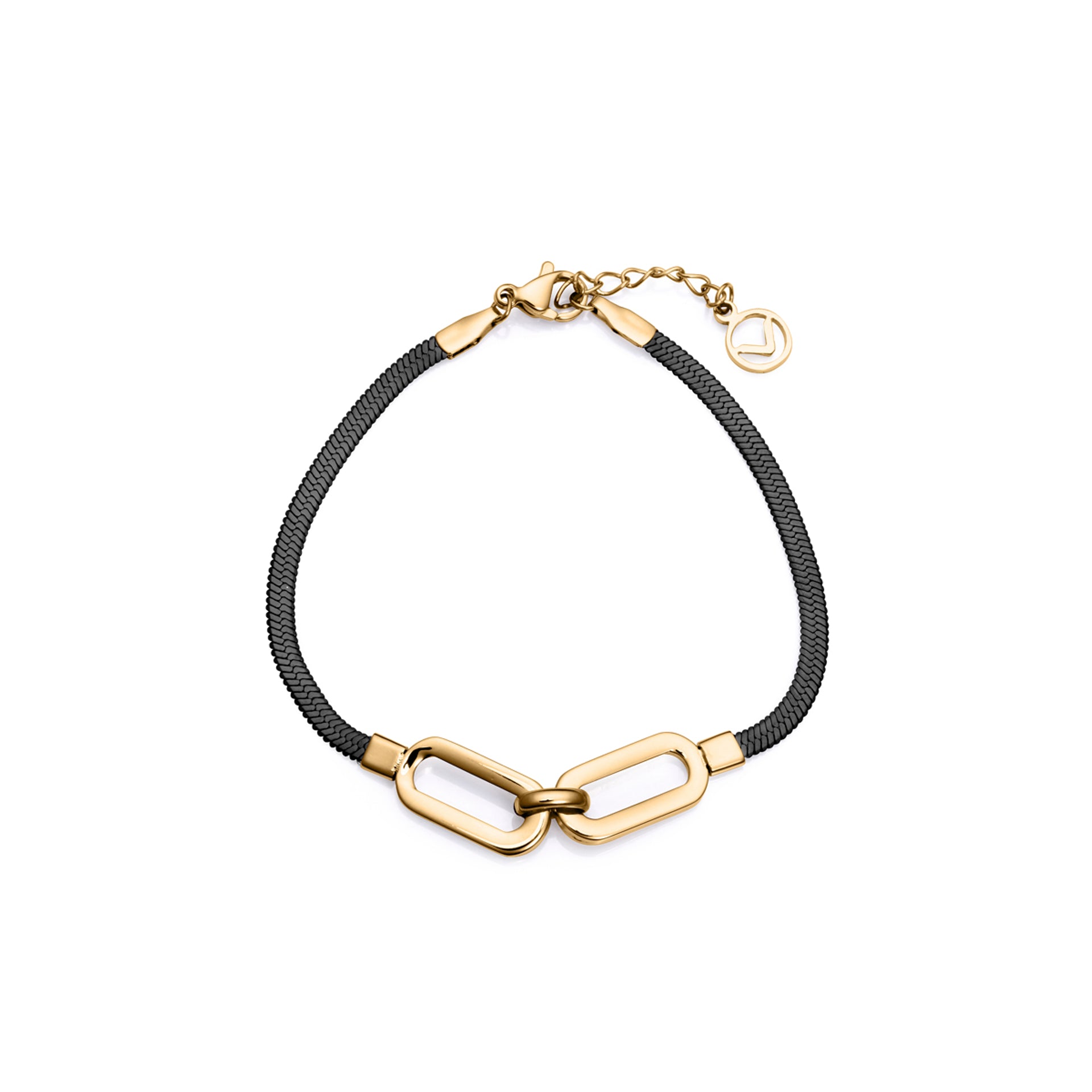 Bracciale doppio da donna in acciaio Ip gold e pelle nera