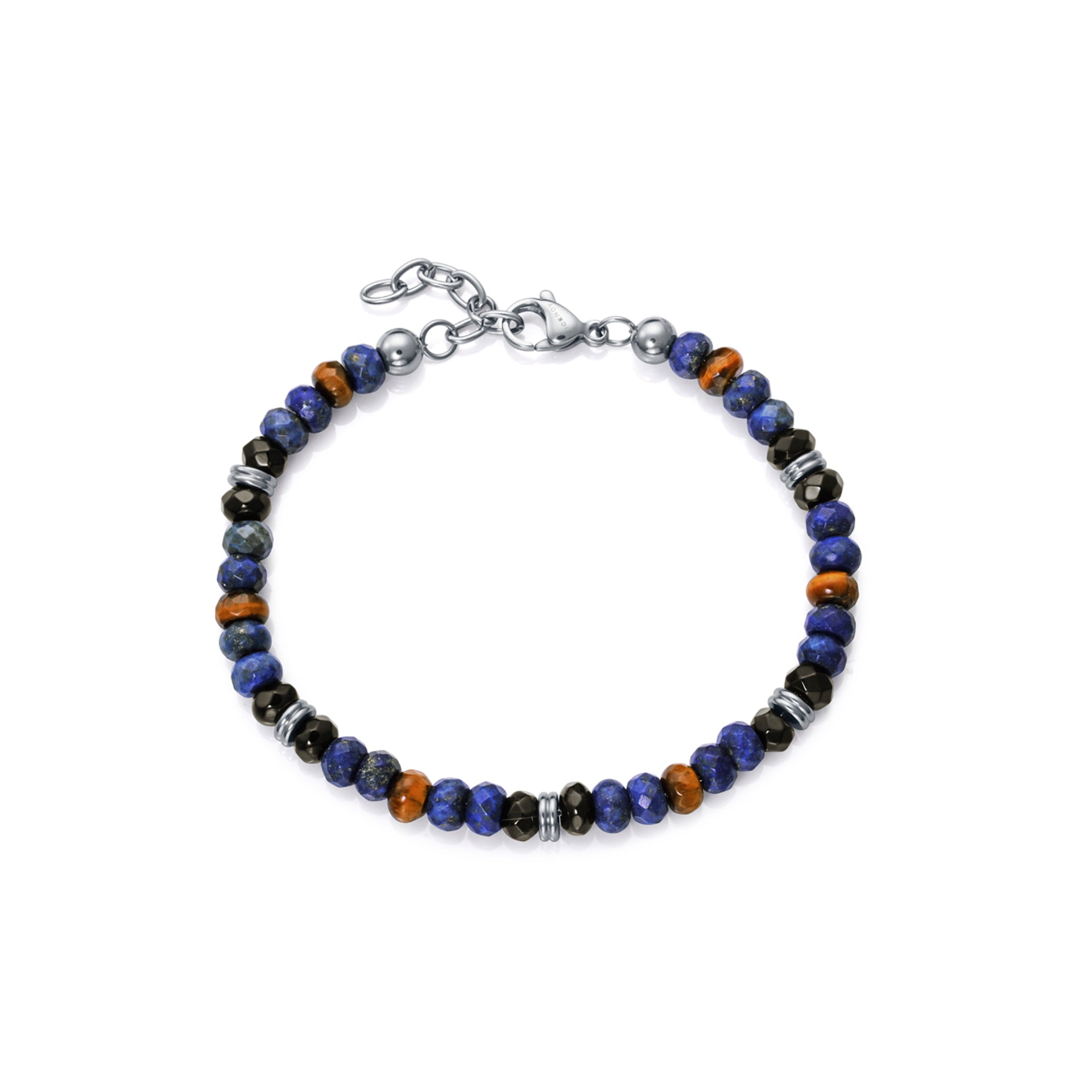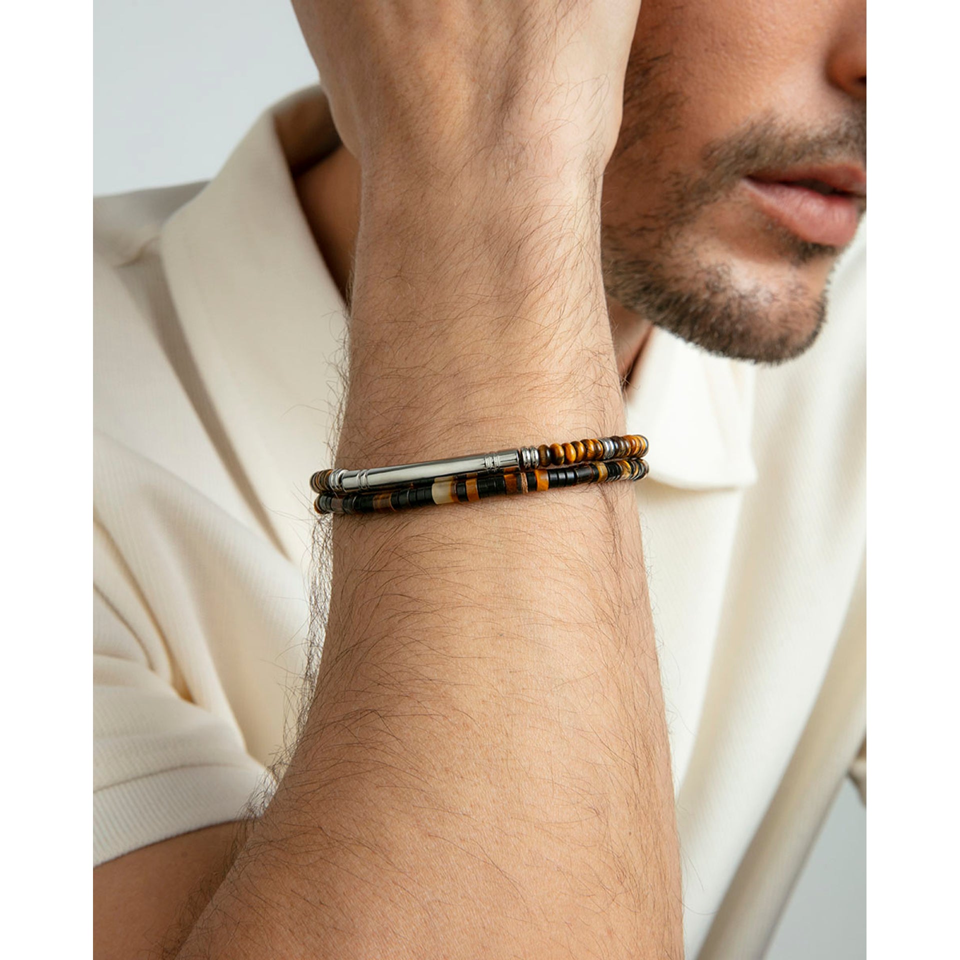 Bracciale da uomo in acciaio Ip nero con pietre naturali