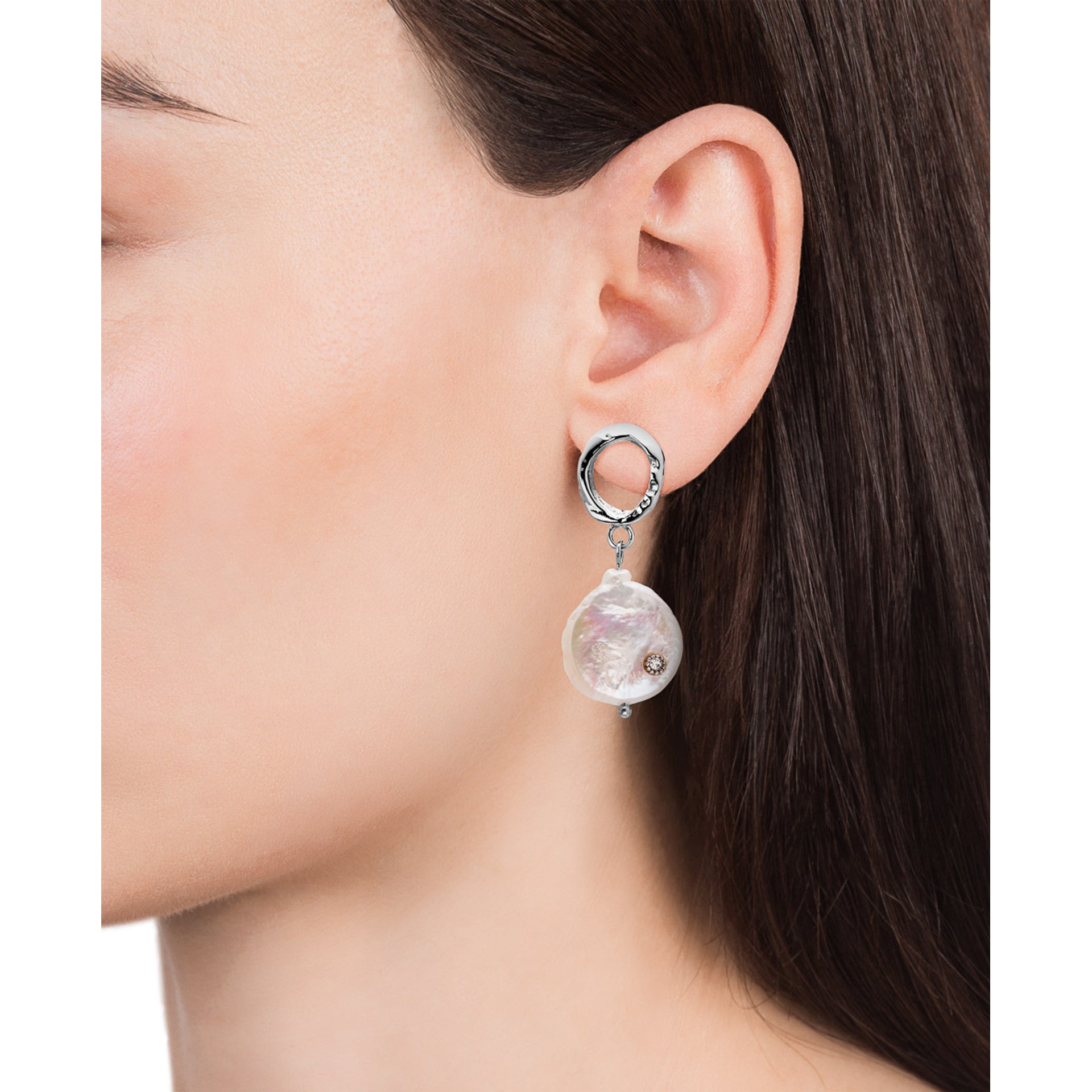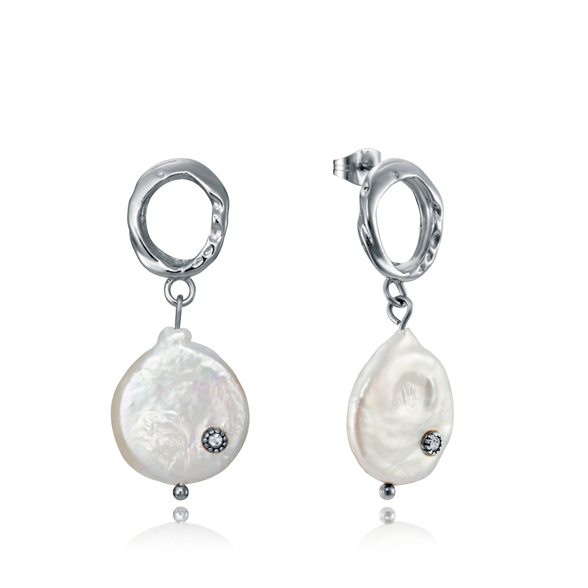 Eleganti orecchini in acciaio a forma di cerchio e perla naturale