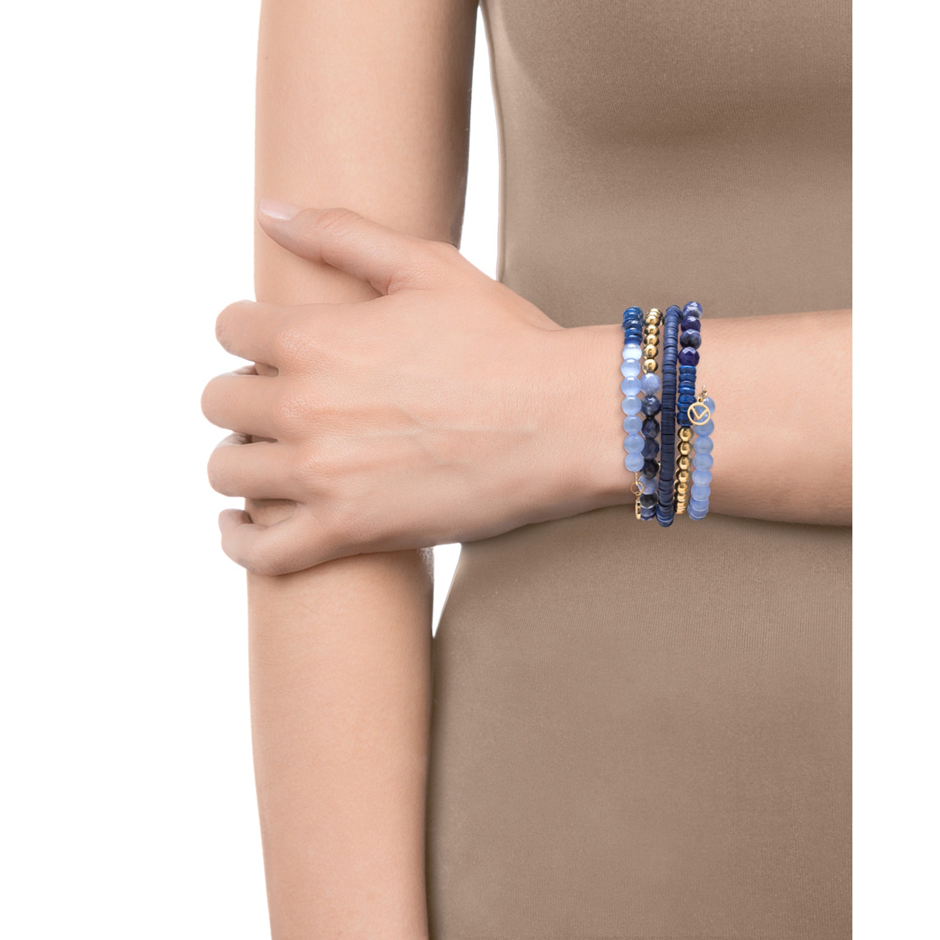Elegante bracciale in acciaio dorato con pietre blu