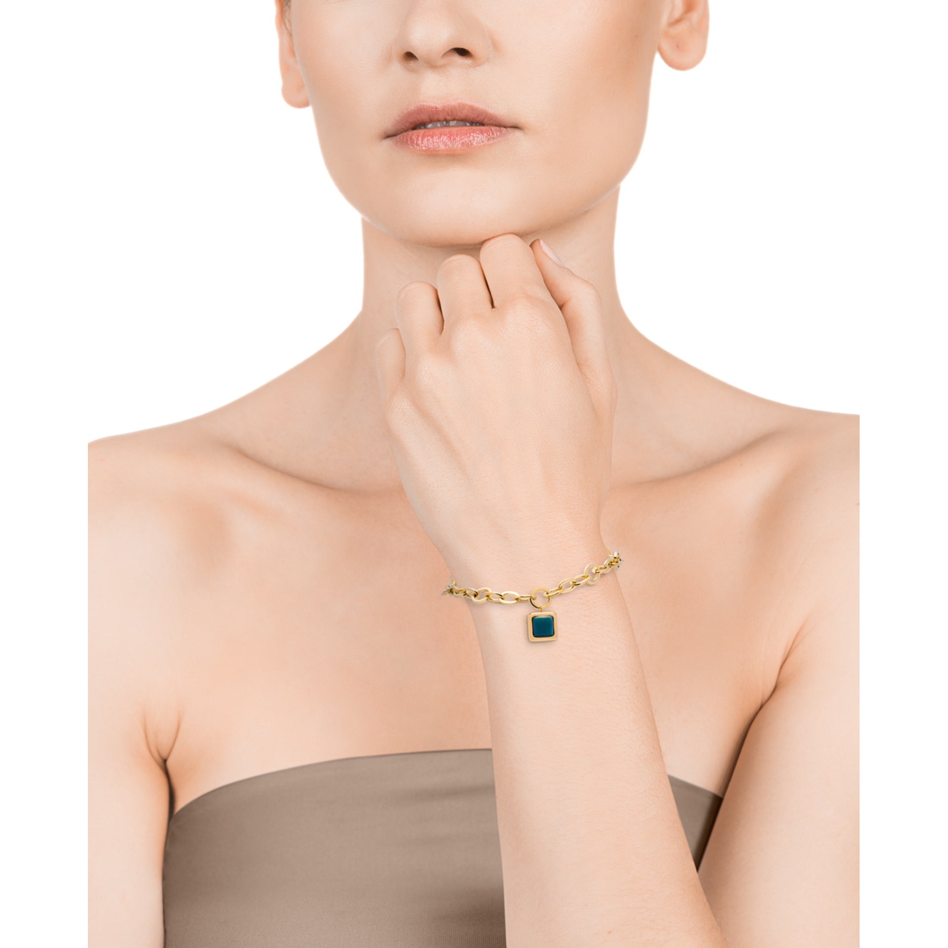 Elegante bracciale in acciaio dorato con pietre