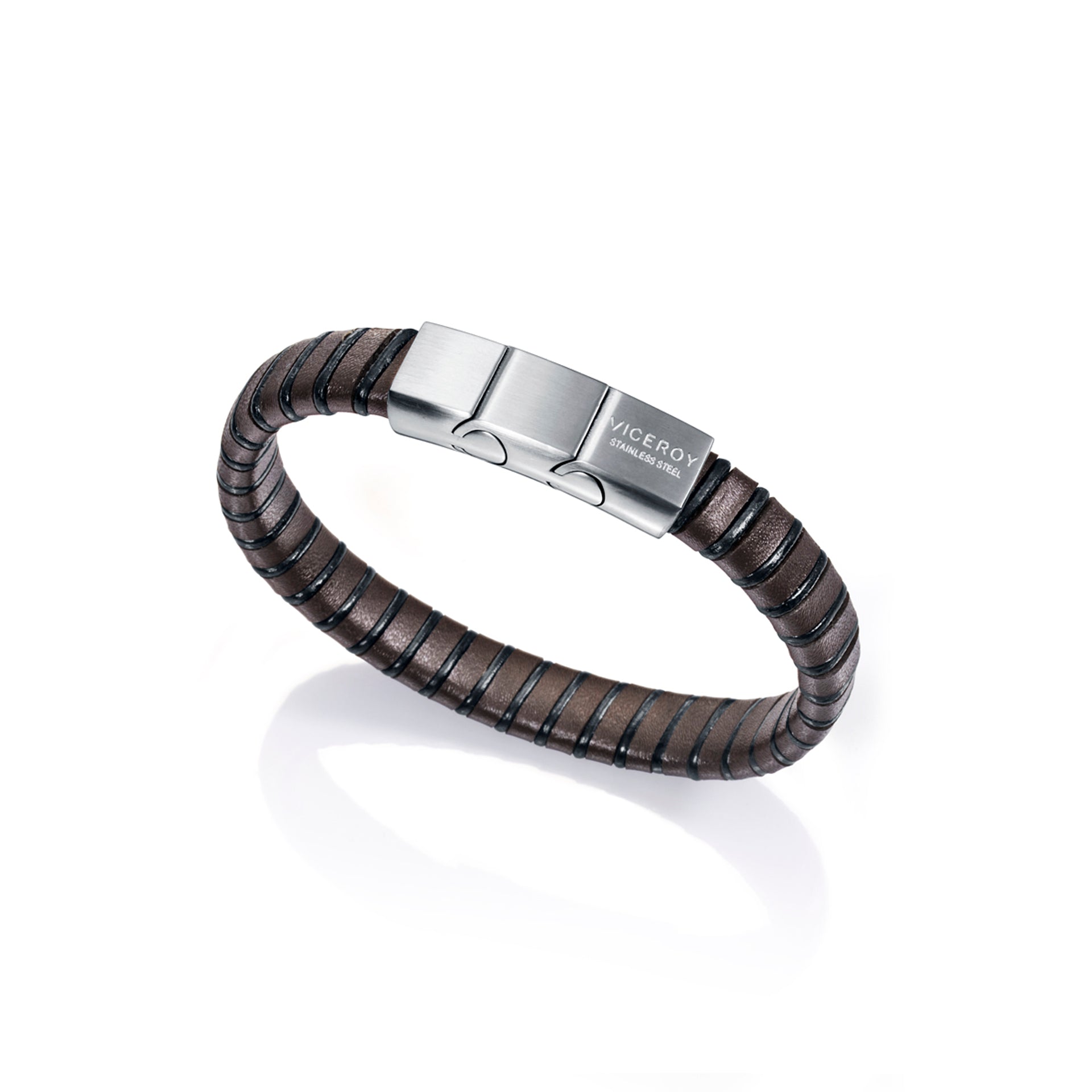 Bracciale Beat da uomo in acciaio e pelle bicolore