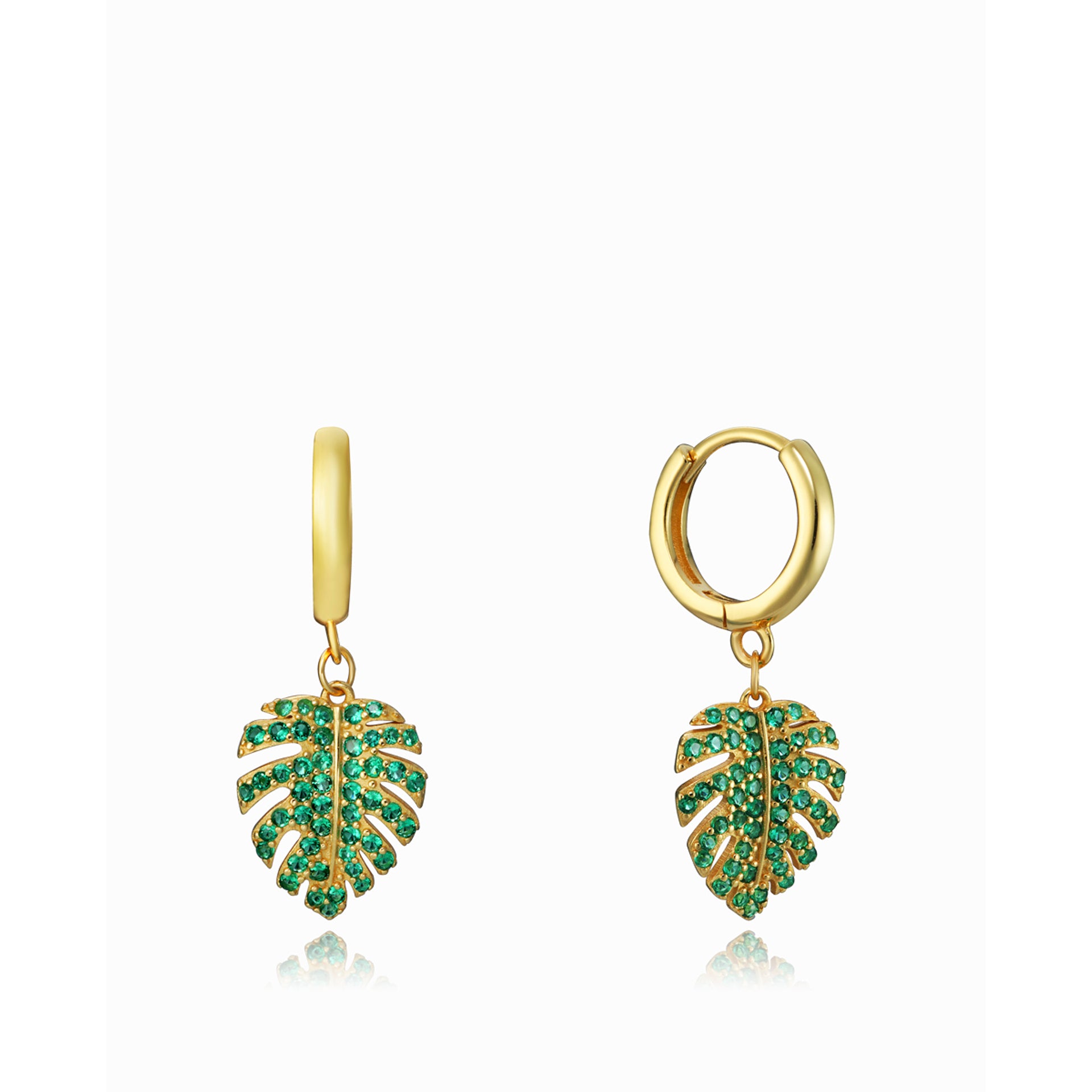 Eleganti orecchini in argento sterling placcato oro con zirconi verdi