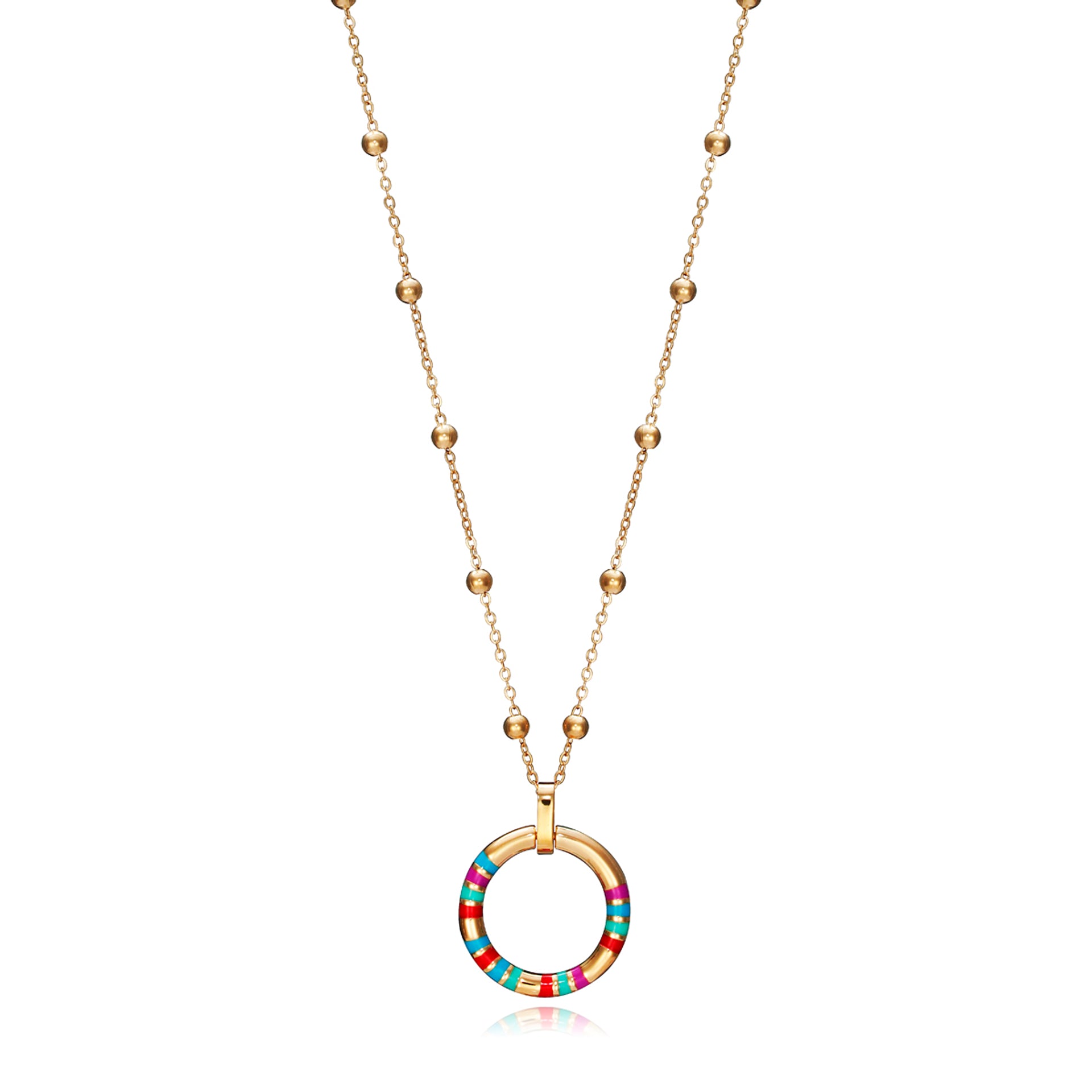 Collana Love in acciaio Ip gold con cuori e smalti colorati