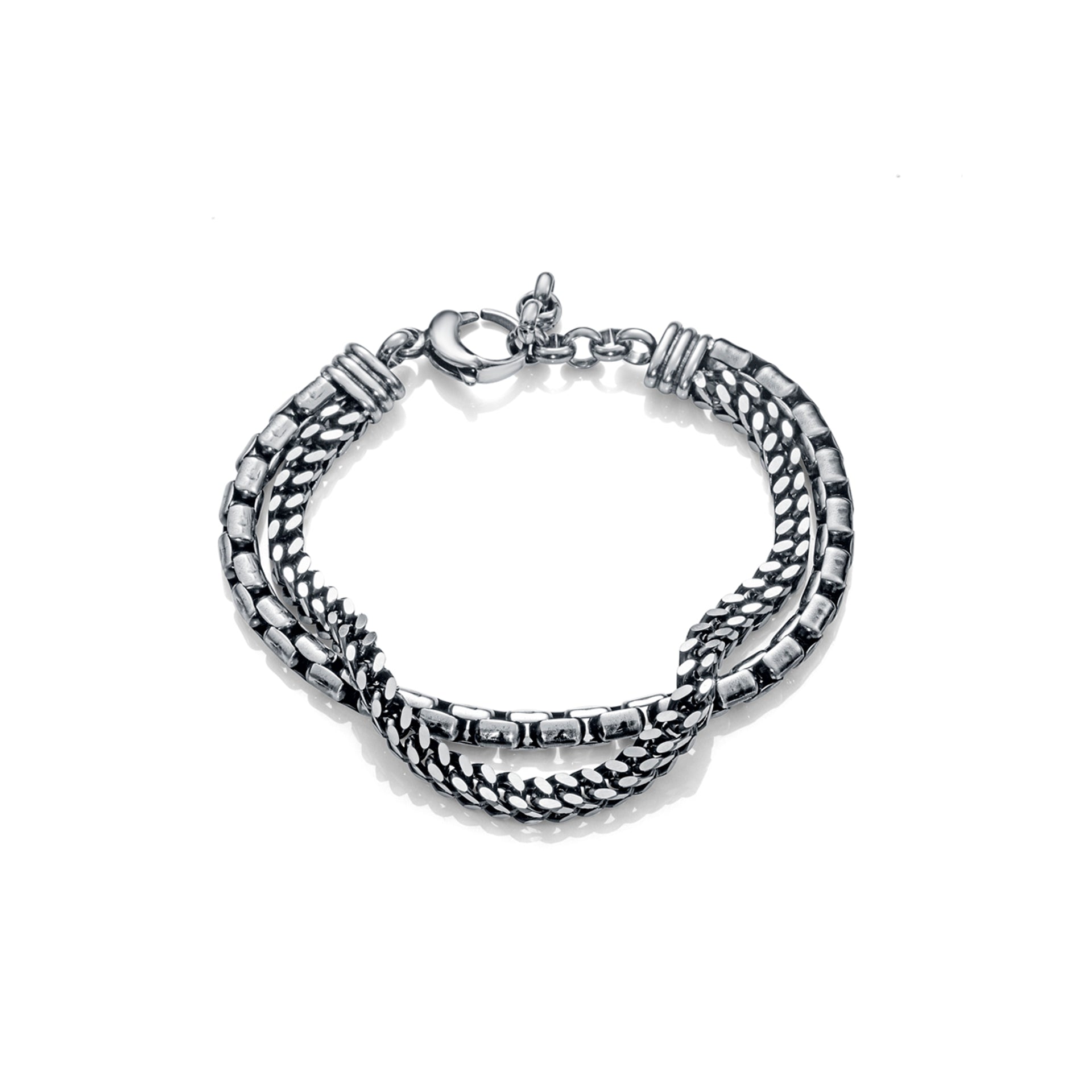 Bracciale Beat da uomo in acciaio ossidato con doppia catena