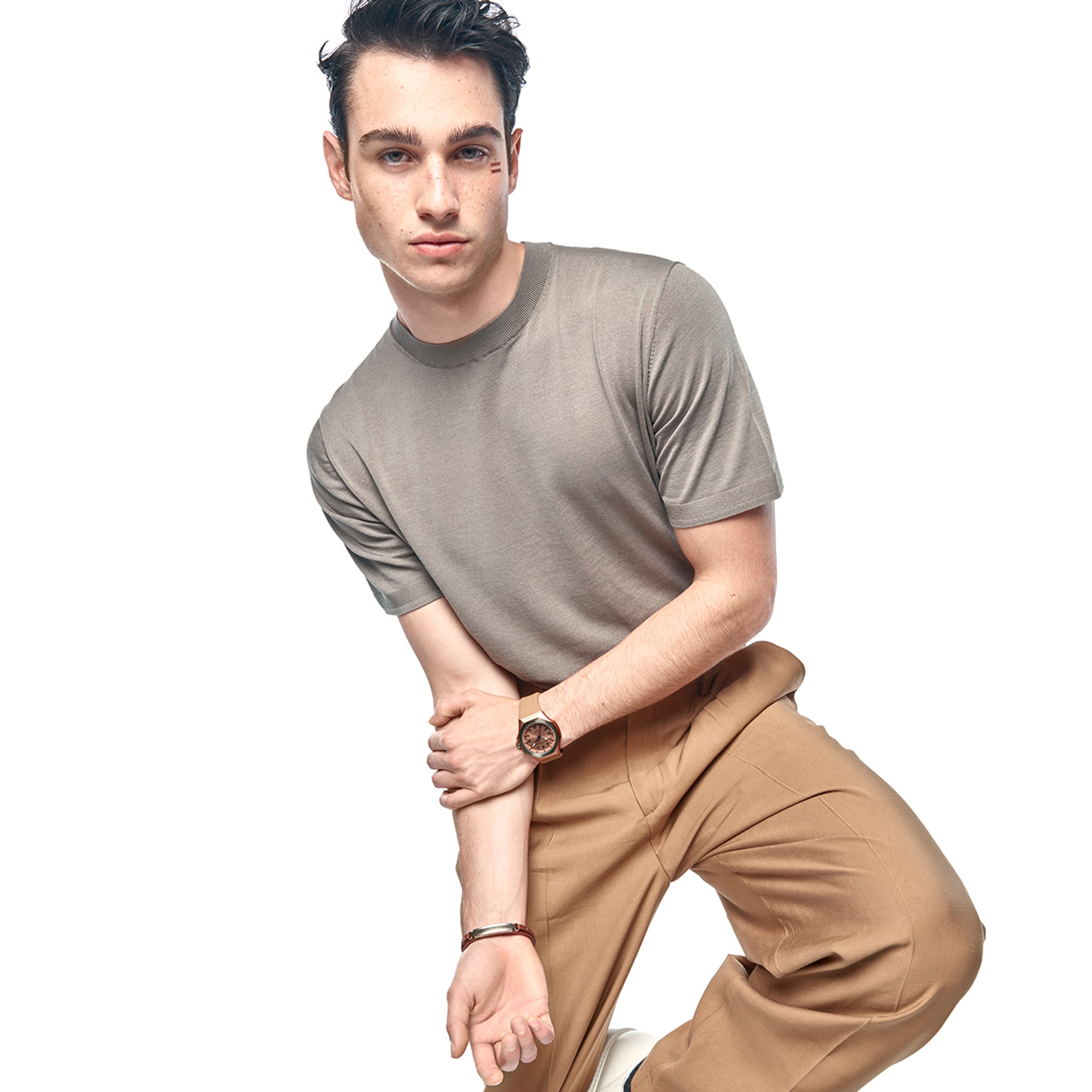 Bracciale doppio da uomo in acciaio con diamante creato