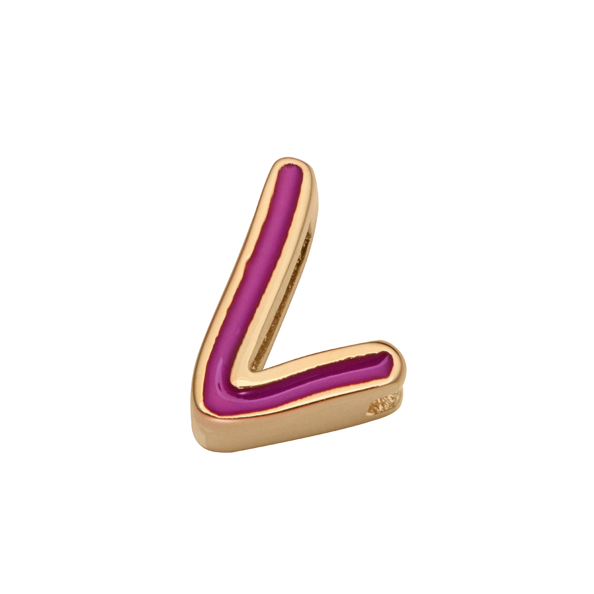 Motivo lettera L per bracciale da ragazza in acciaio dorato e smalto