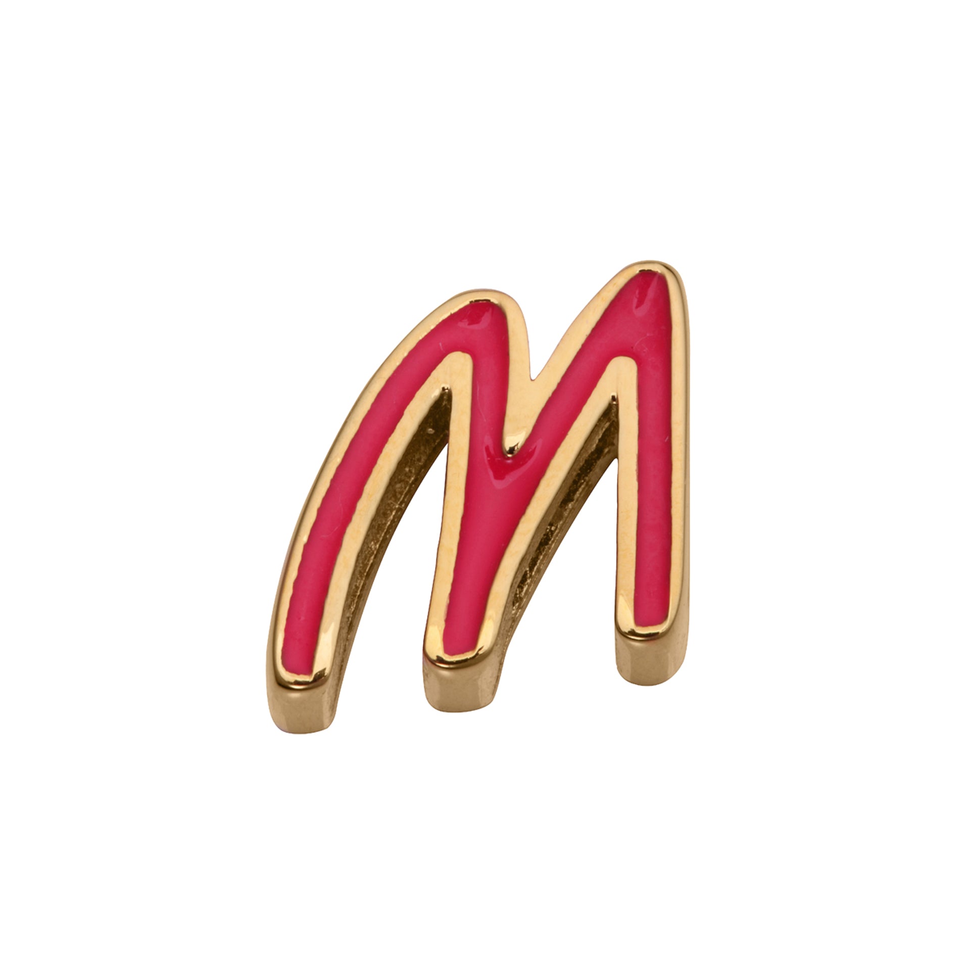 Motivo lettera M per bracciale da ragazza in acciaio gold e smalto