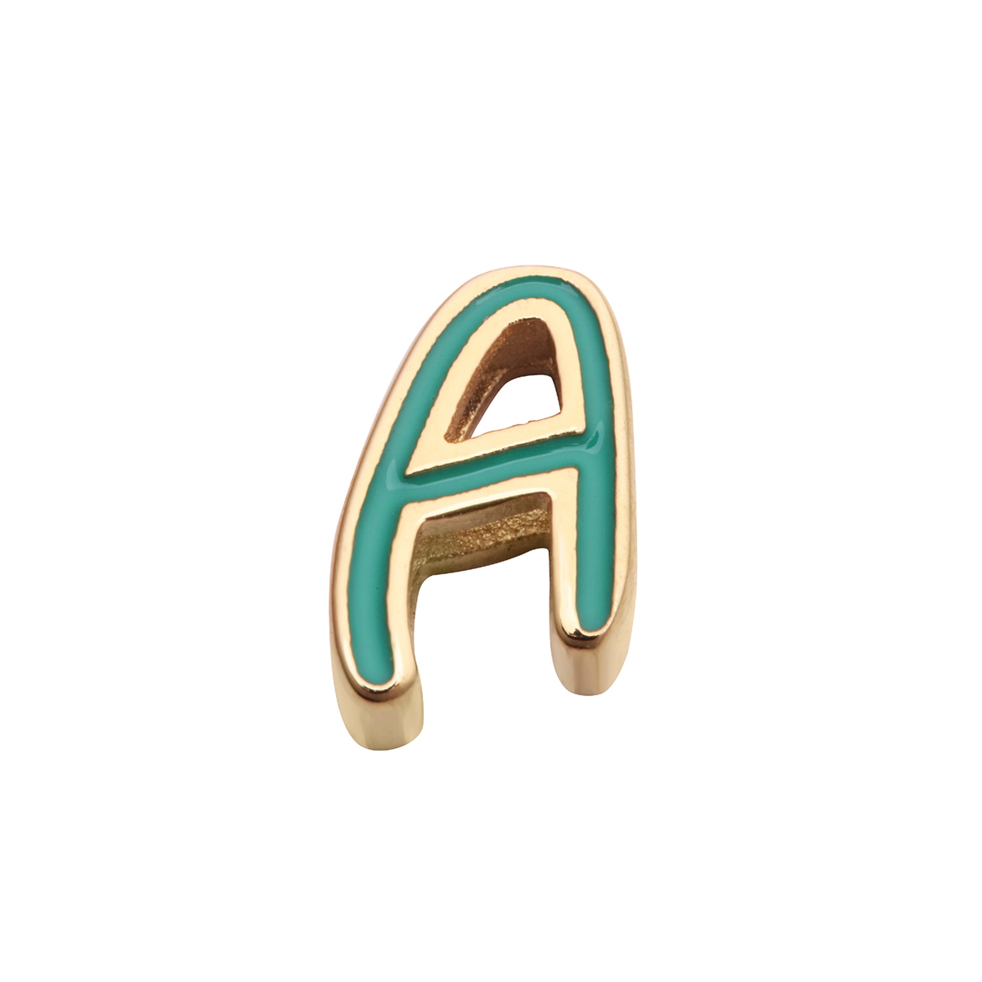 Motivo lettera A per bracciale da ragazza in acciaio dorato e smalto