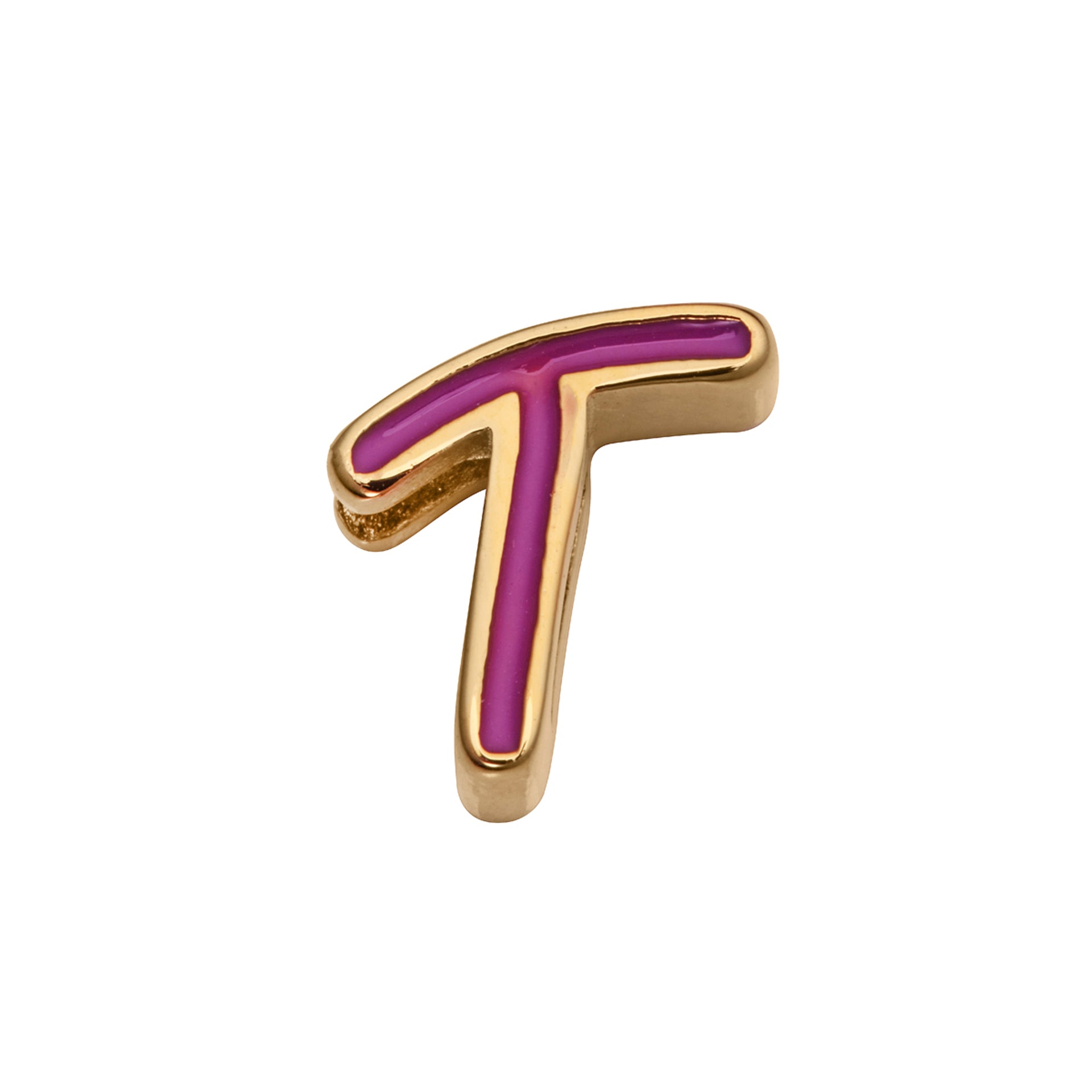 Motivo lettera T per bracciale da ragazza in acciaio gold e smalto