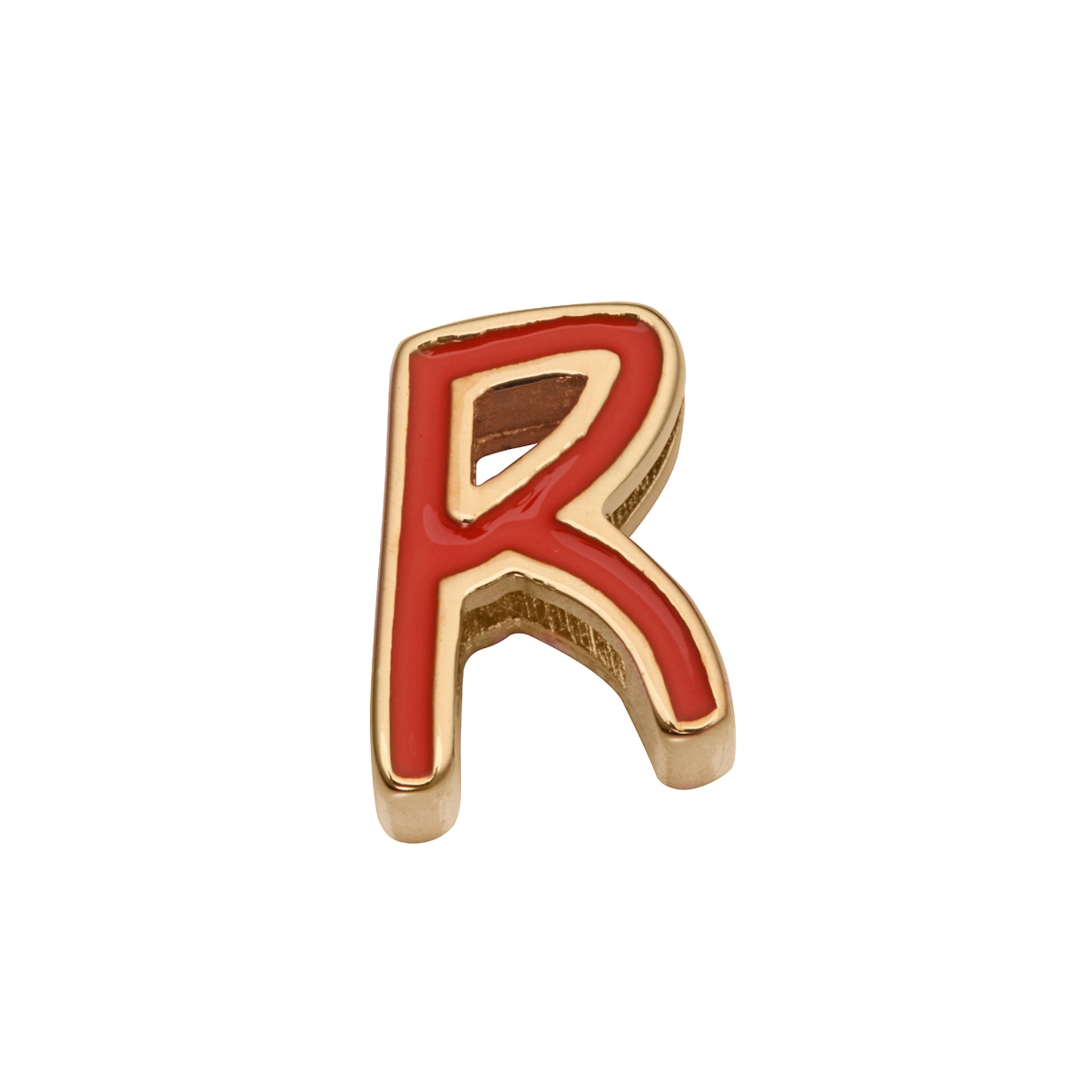 Motivo lettera R per bracciale da ragazza in acciaio gold e smalto