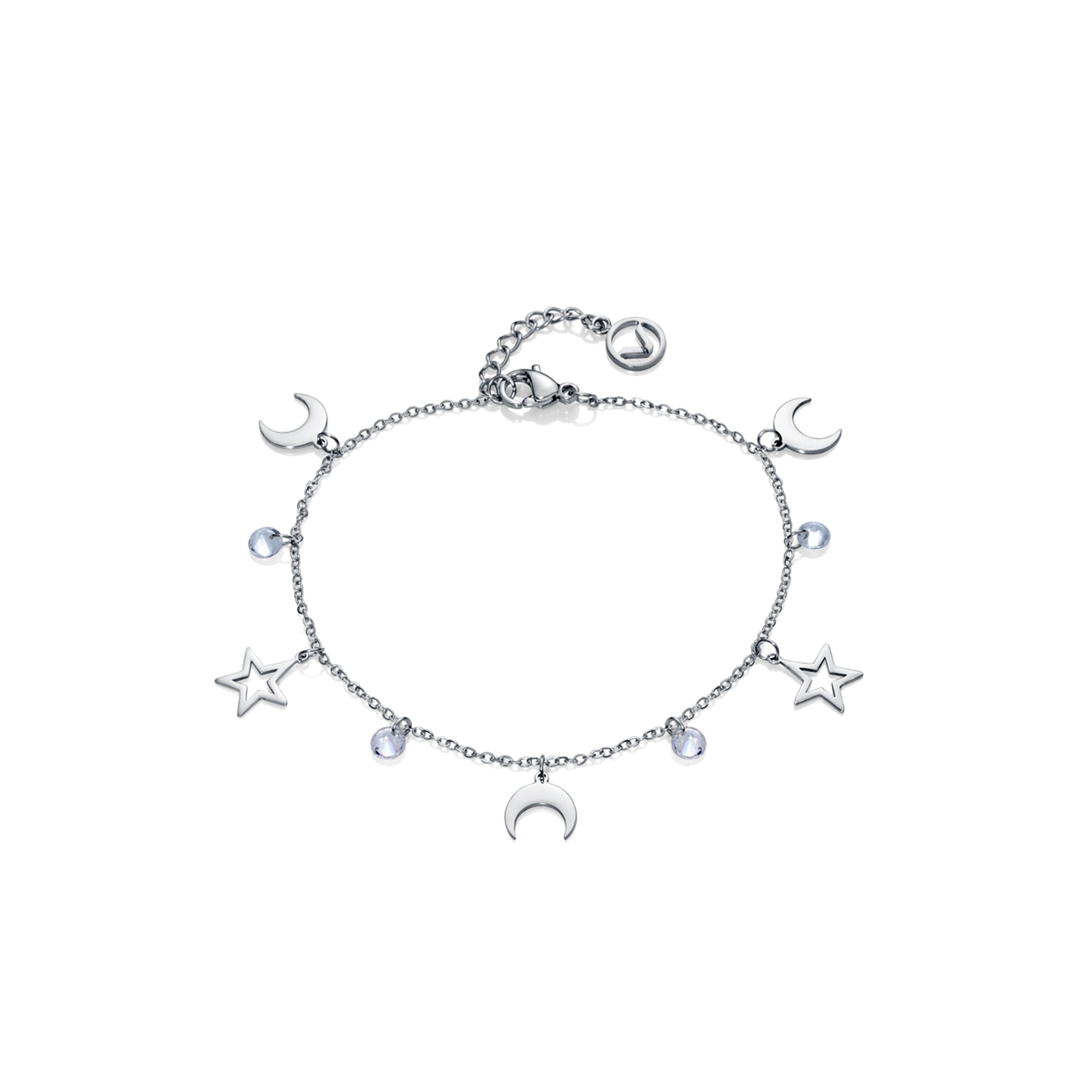 Pulsera Kiss de acero con estrellas y lunas y circonitas