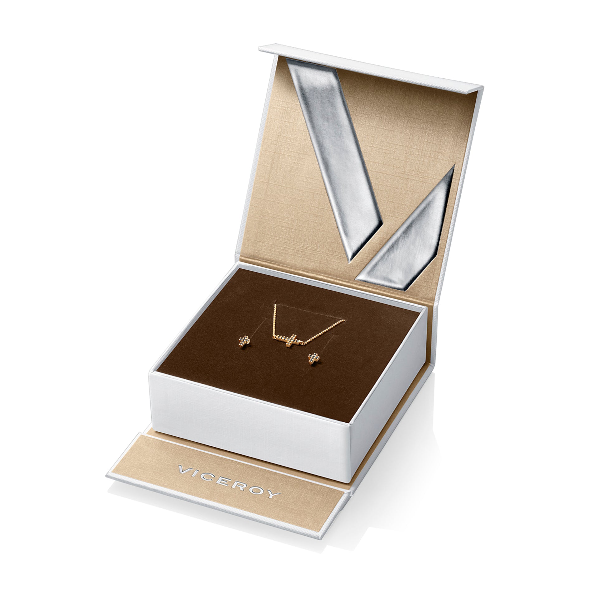 Set de Pendientes y Pulsera Jewels 7092K100-35 de plata bañados en oro y circonitas negras