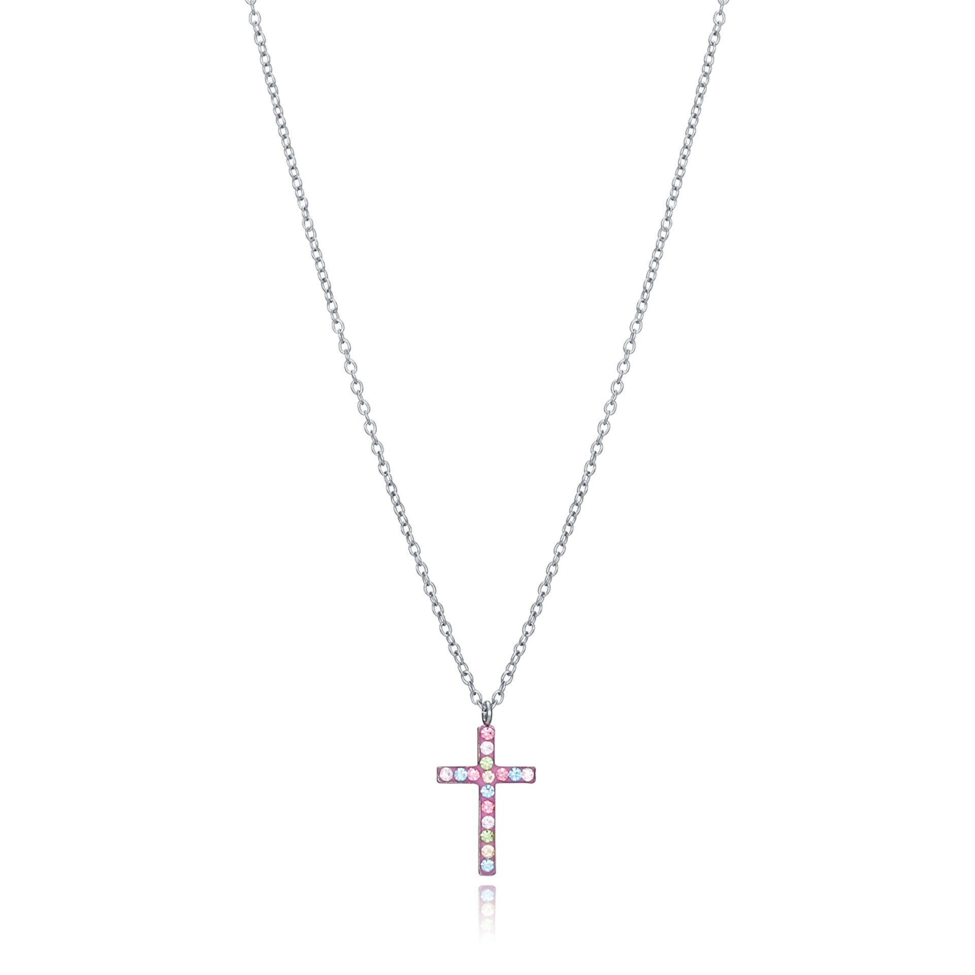 Dolce ciondolo in argento rodiato con croce di zirconi colorati