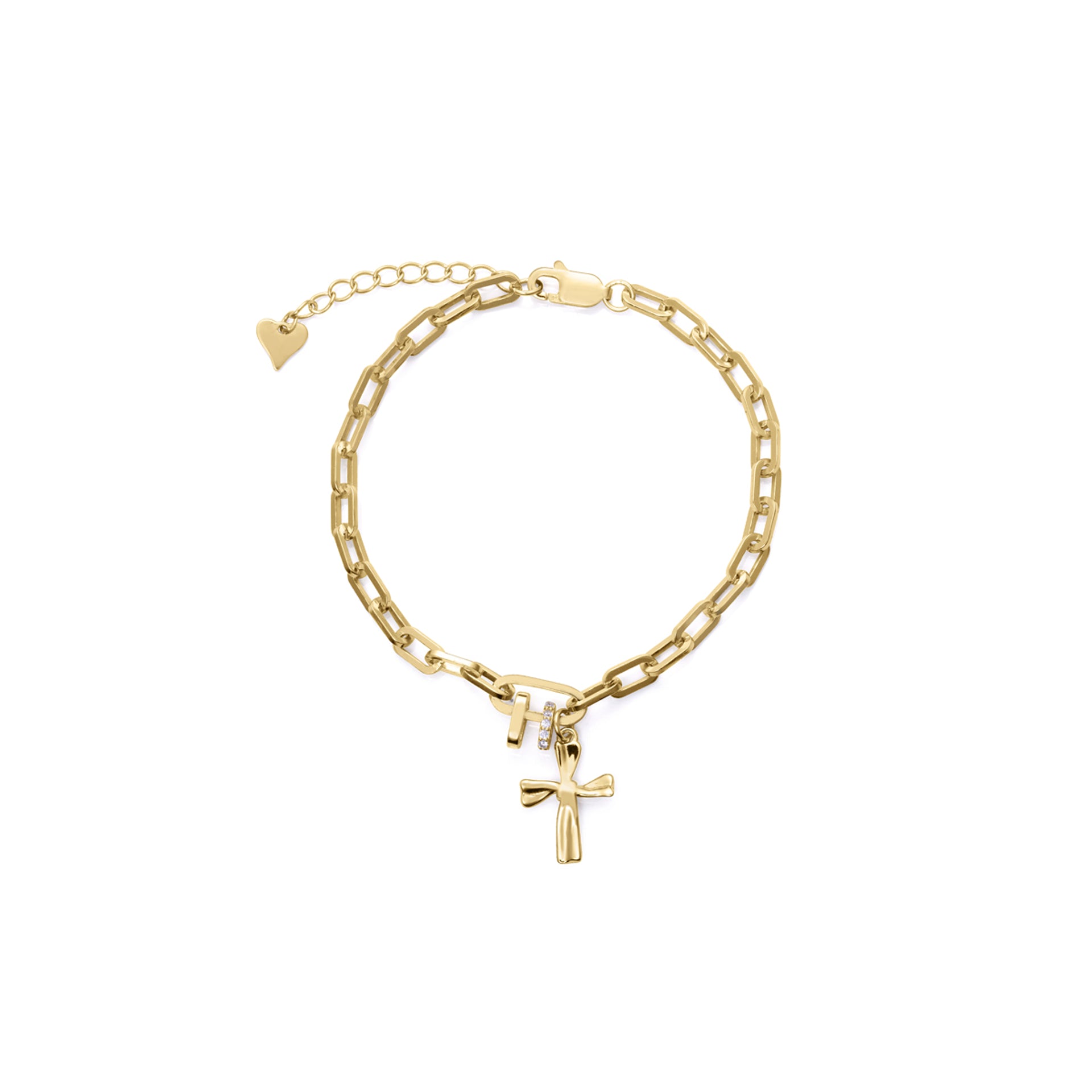 Bracciale da bambina in argento sterling con placcatura in oro, zirconi bianchi e croce pendente