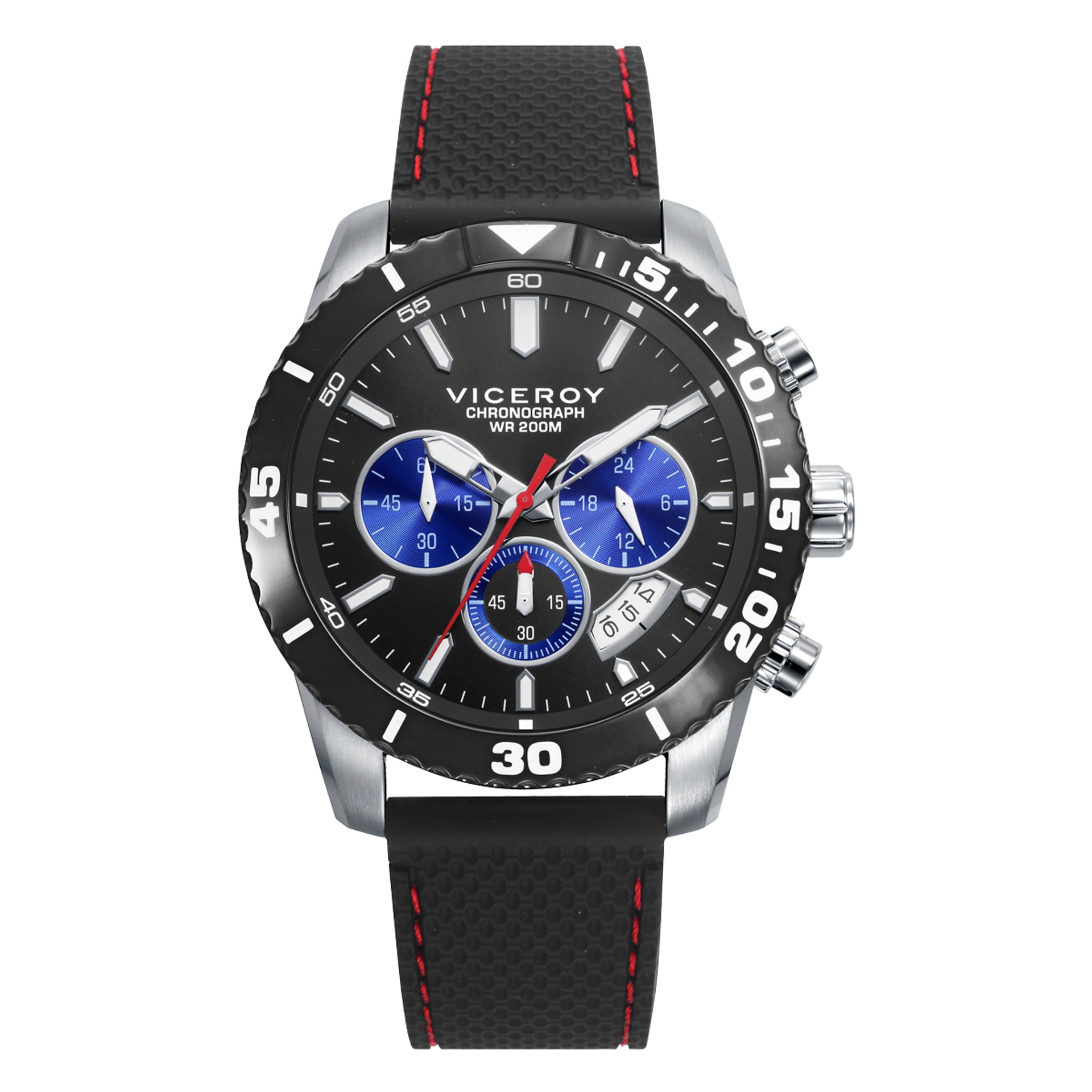 Orologio con cassa in acciaio con ghiera IP blu girevole a 20 ATM e cinturino in silicone blu con movimento al quarzo
