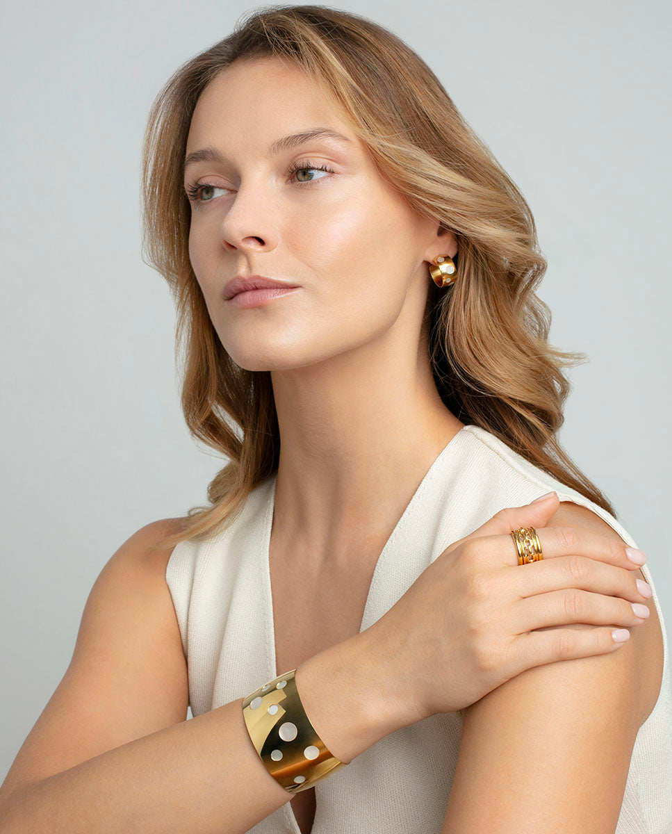 Evita il contatto diretto con trucco, creme o profumi, nonché l'uso di liquidi lucidanti e altri prodotti chimici, poiché potrebbero danneggiare il metallo, la pelle o altri elementi del gioiello o ridurre la durata della placcatura.