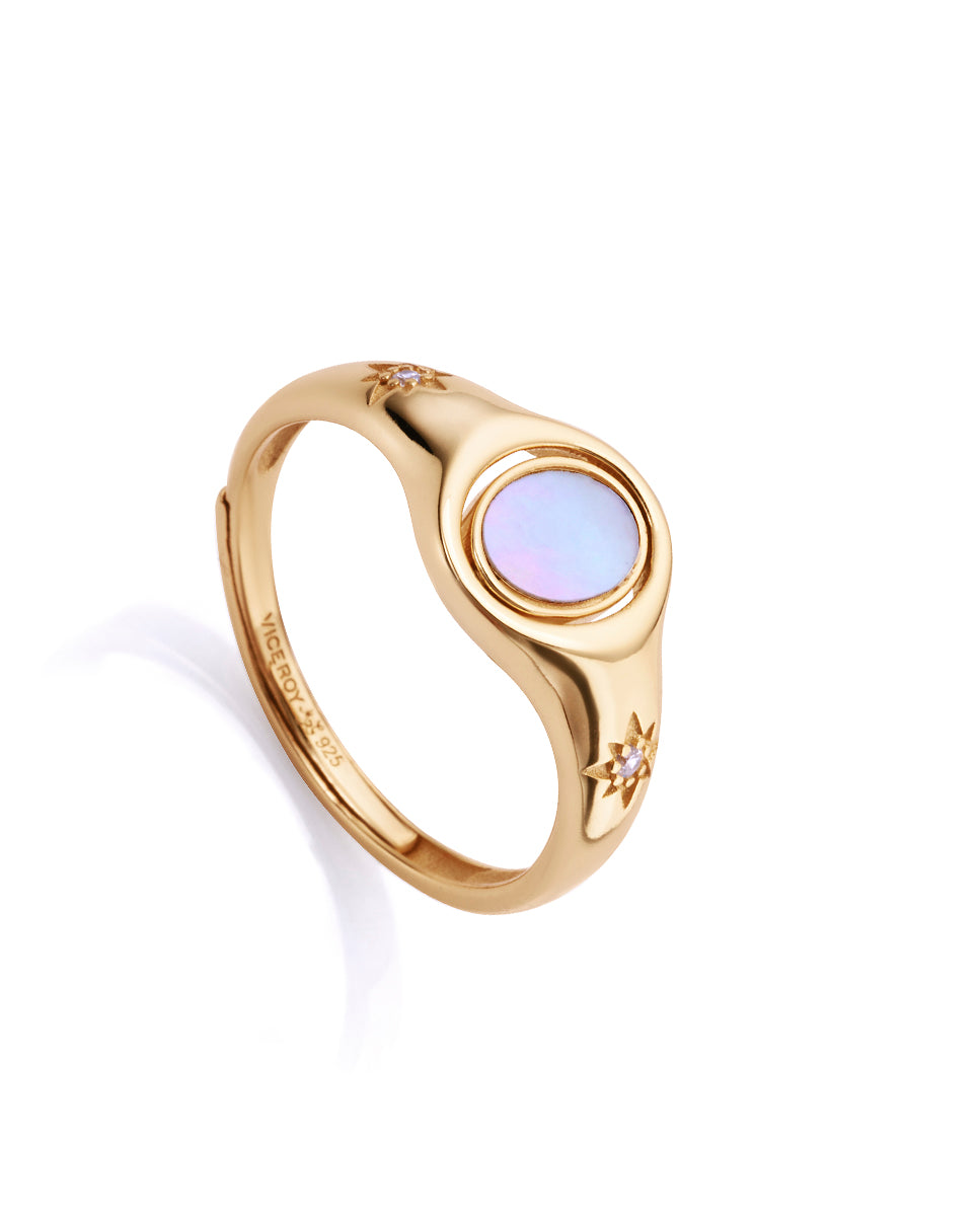 Anillo Elegant de plata de ley con baño de oro con madre perla y circonita blanca