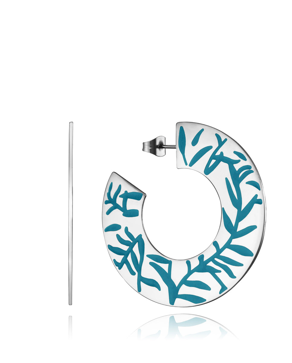 Pendientes Chic de acero en forma de aros con estampado de flores en azul