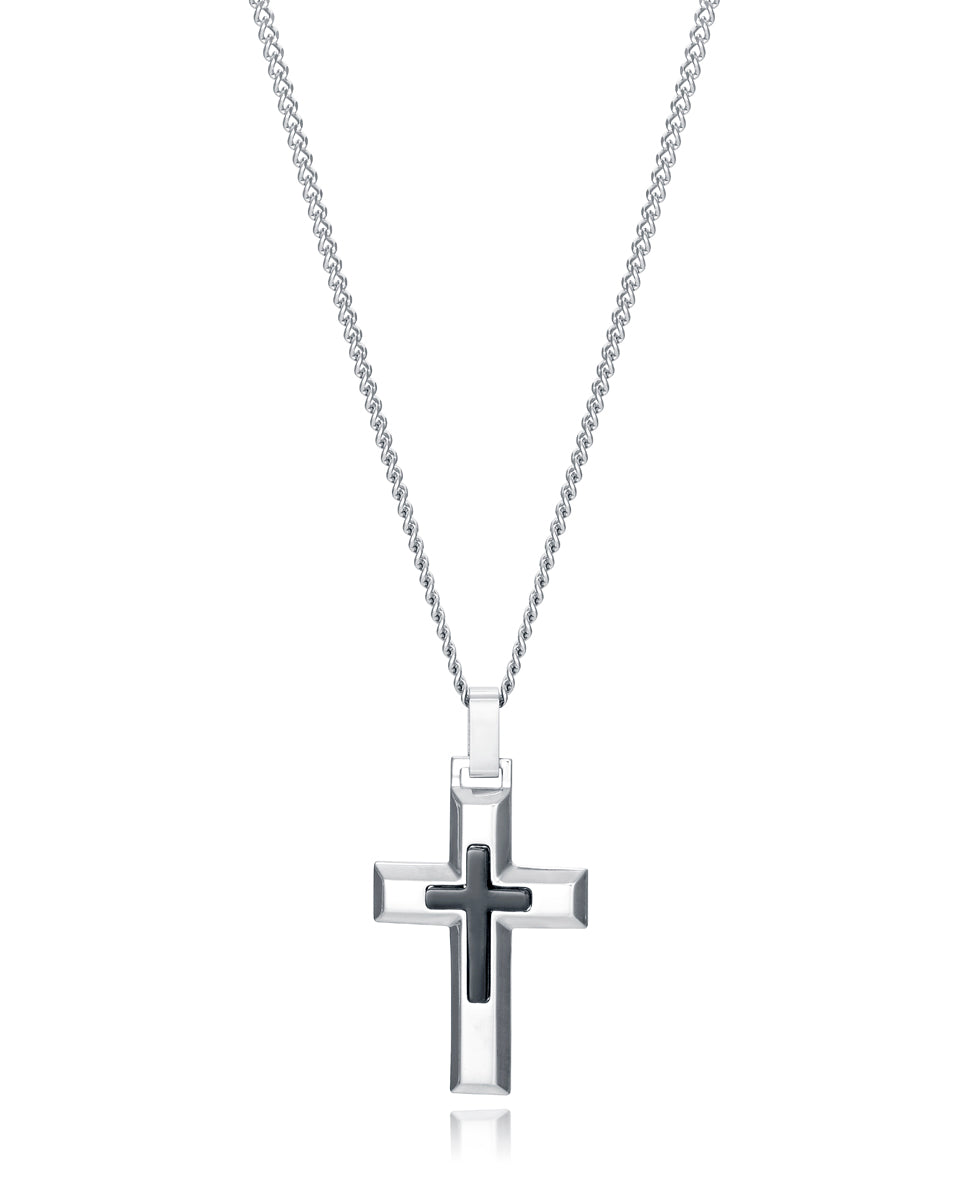 Collana Da Uomo In Acciaio Magnum Con Croce In Acciaio Lucido Ip Nero