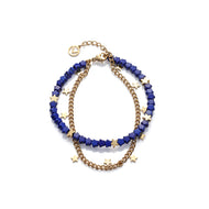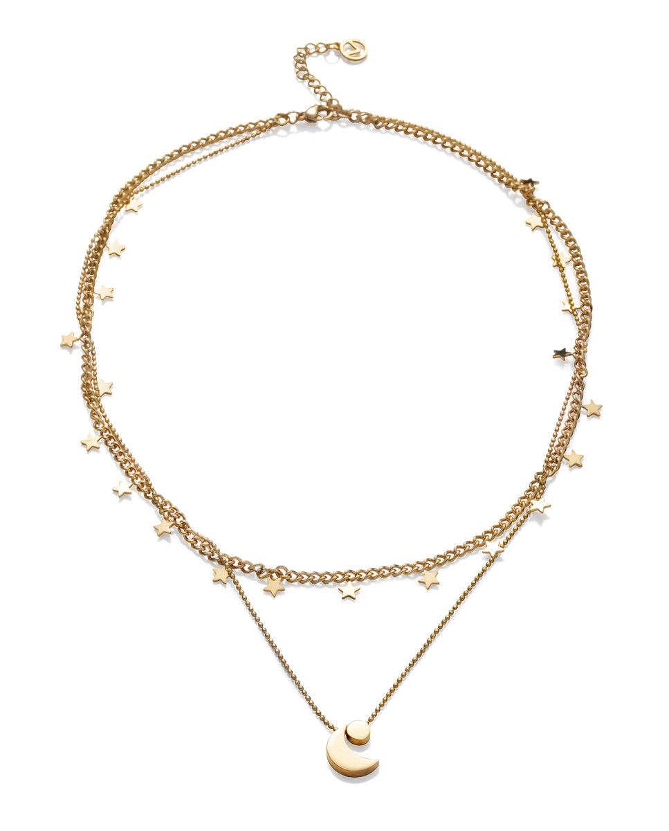 Collar Kiss de acero dorado con dos cadenas con motivos de estrella y luna