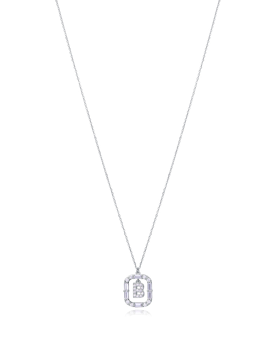 Elegante collana in argento sterling con lettera B con placcatura rodio e zirconi bianchi