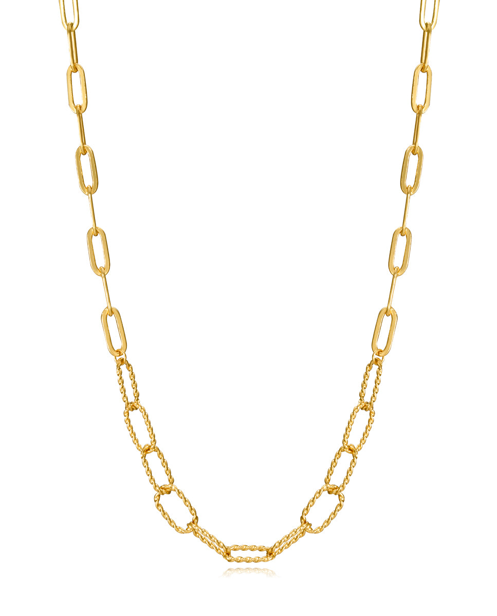 Elegante collana in argento sterling placcato oro con maglie di varie dimensioni