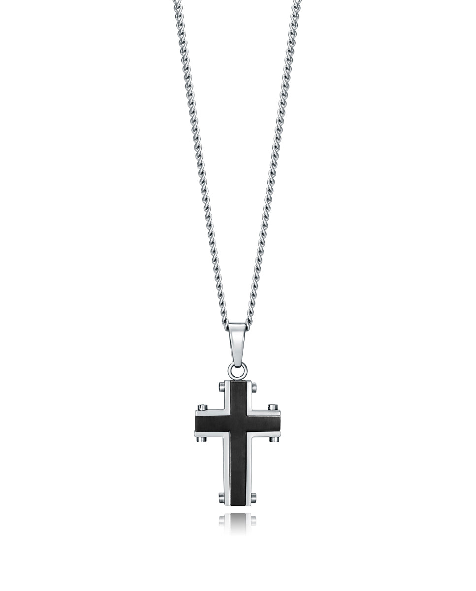 Pendente Magnum da Uomo in Acciaio IP Nero con Croce