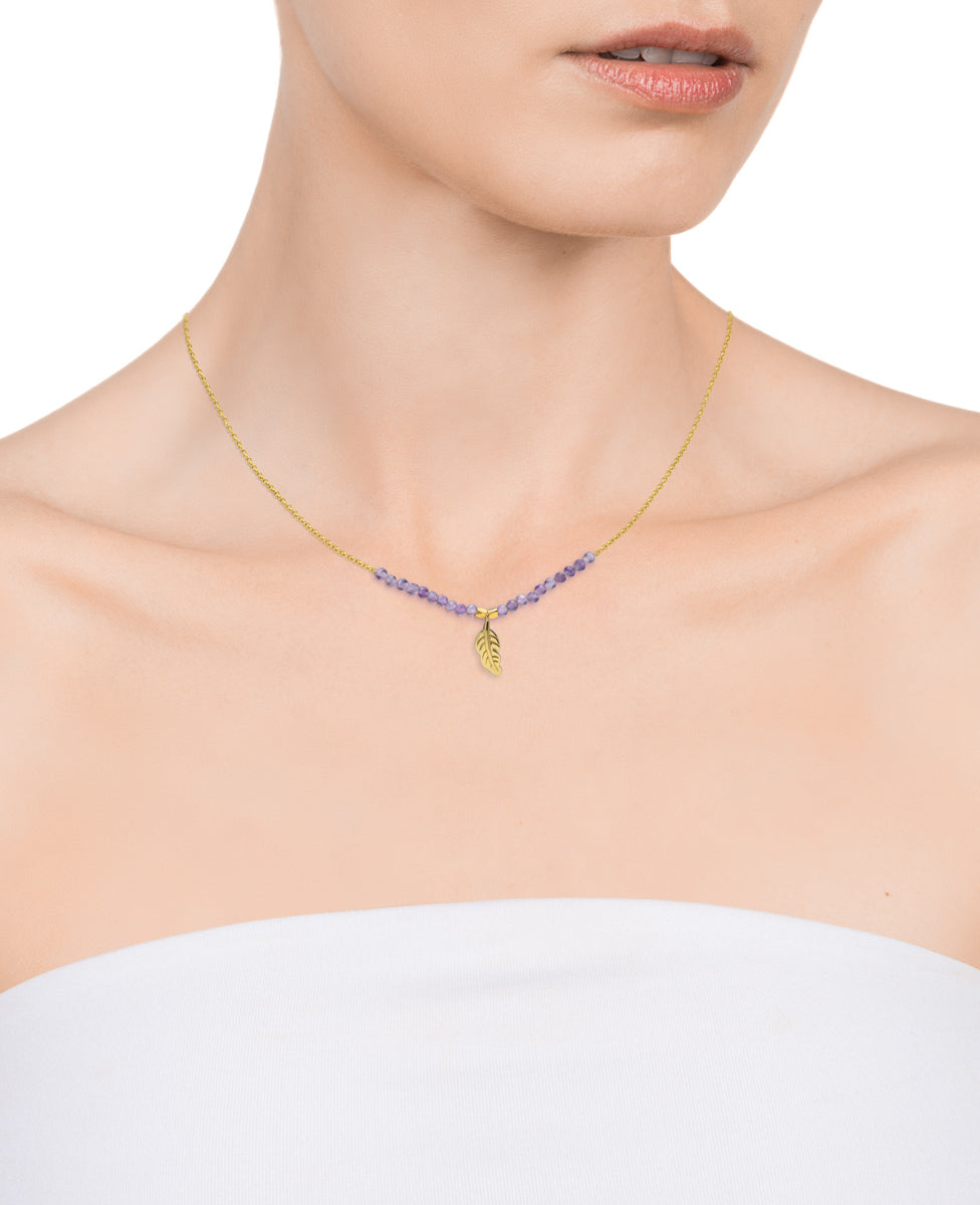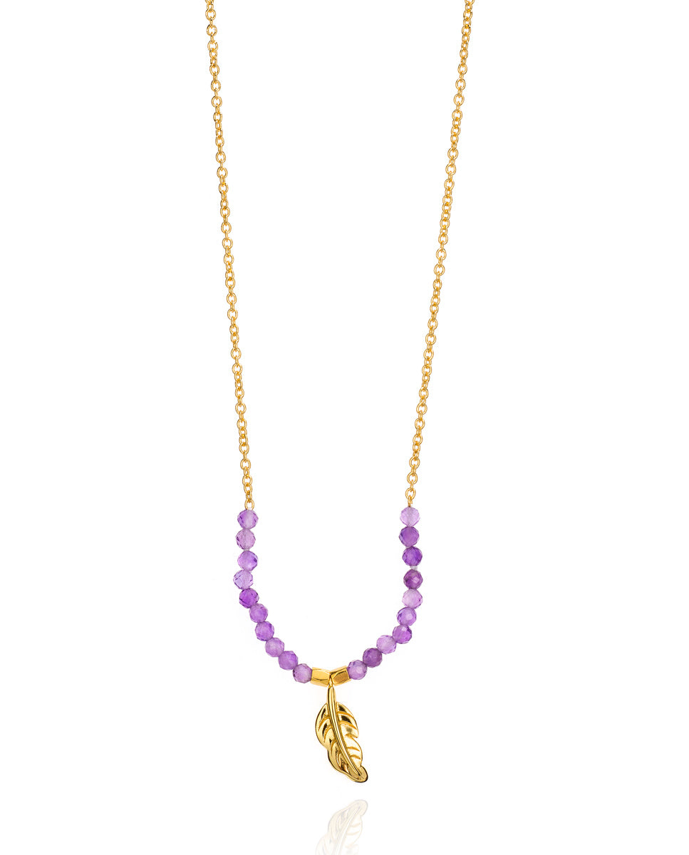Collar Trend de plata de ley bañada en oro con 20 amatistas y motivo en forma de pluma