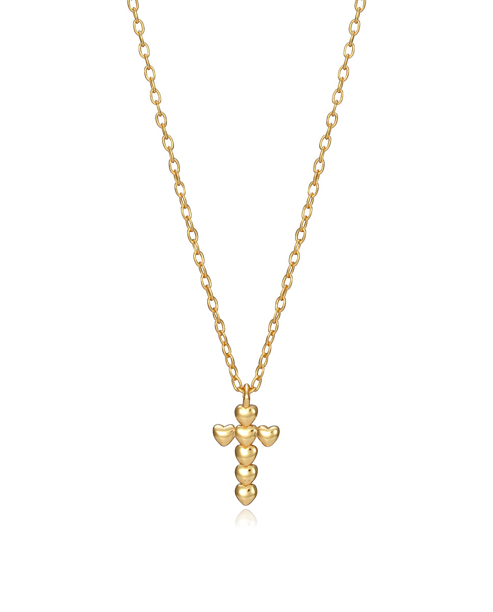 Dolce collana da bambina in argento con placcatura in oro e croce di cuori