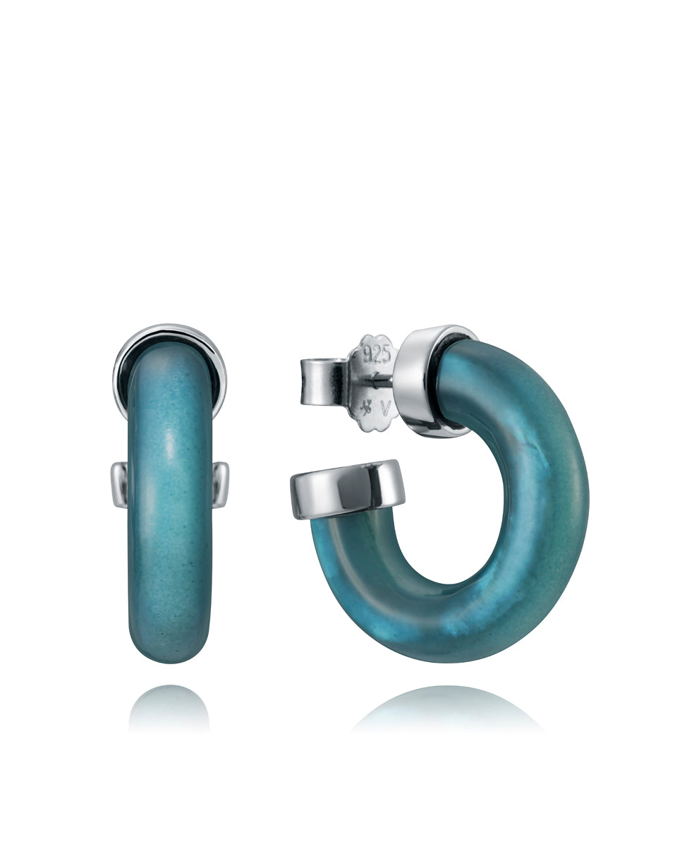 Pendientes de aro Elegant de plata y madre perla azul